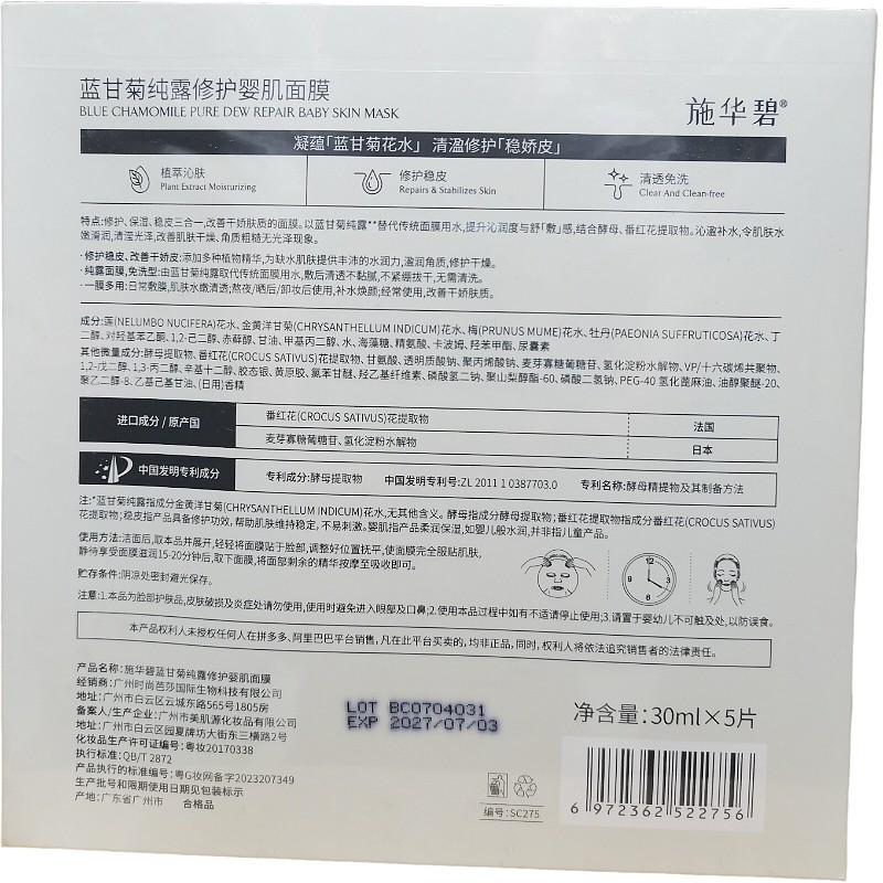#施华碧蓝甘菊纯露修护面膜 #桦树汁纯露锁水保湿面膜