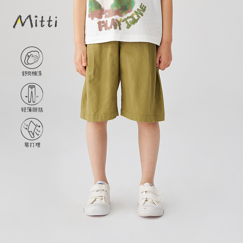 📚 Mitti2025夏季新款男童短裤纯色松紧腰宽松休闲打褶儿童薄款裤子