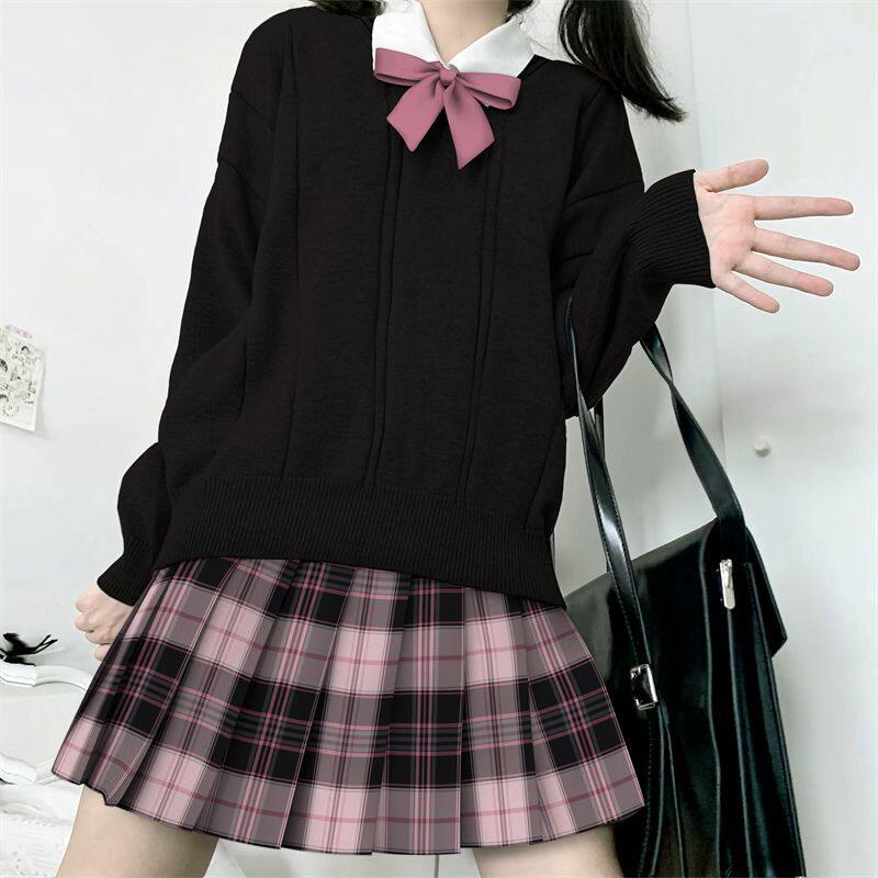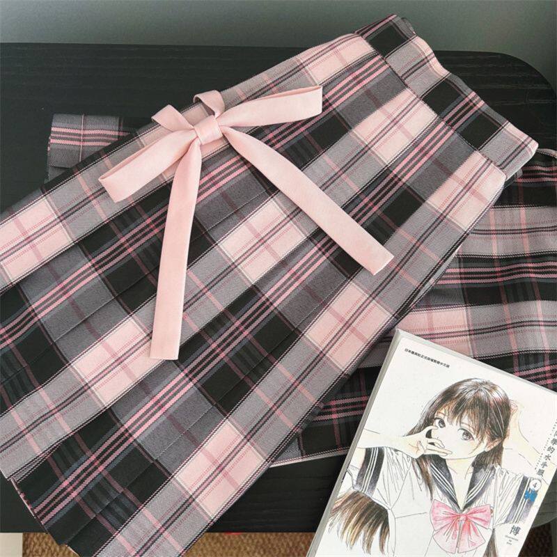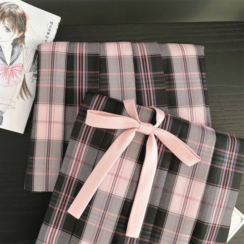📚 初田町jk制服原创格裙【粉雾海】学院风马甲衬衫套装女百褶裙黑粉