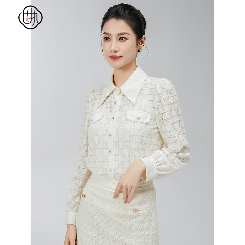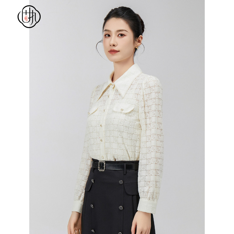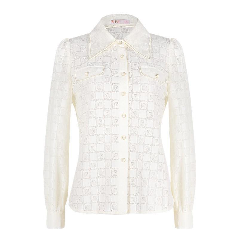📚 固执春季新款学院风气质翻领泡泡袖长袖蕾丝衬衫10841CS08799