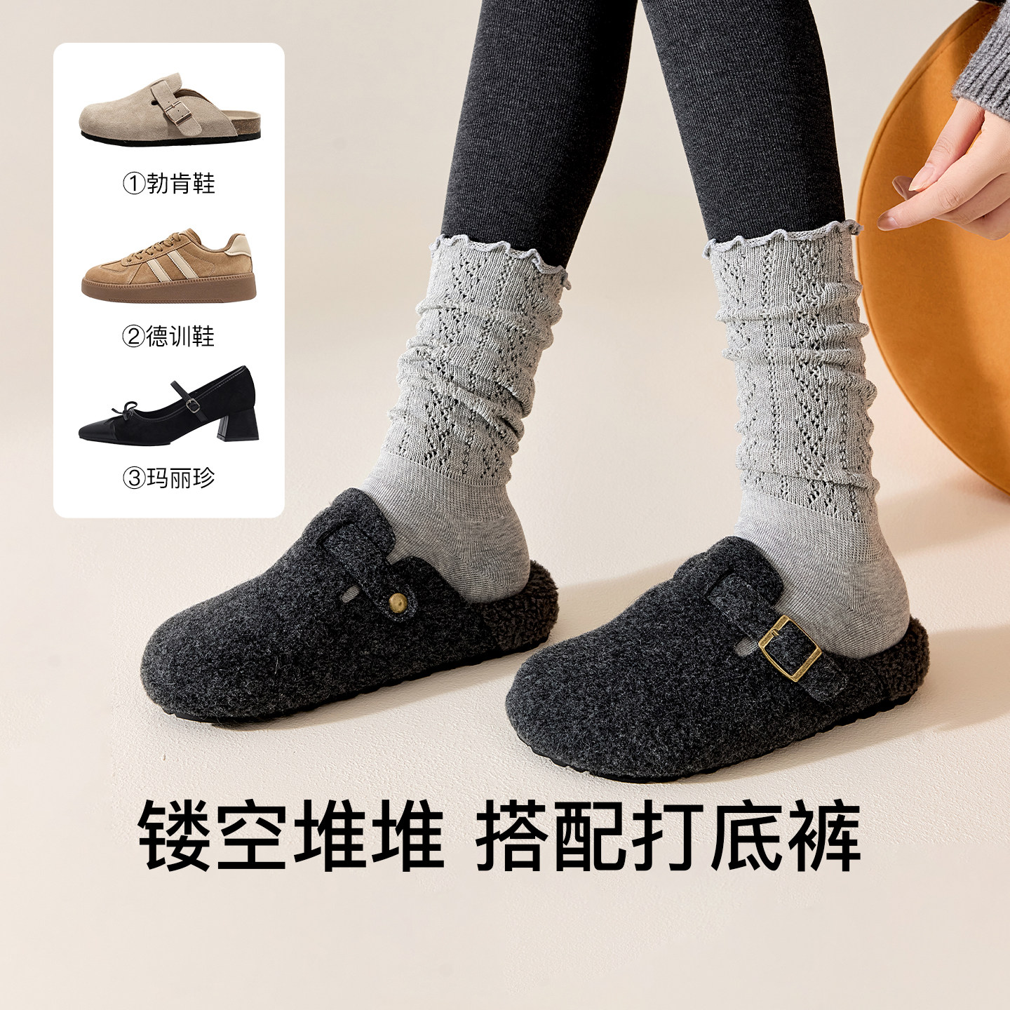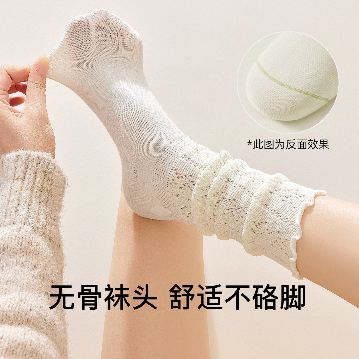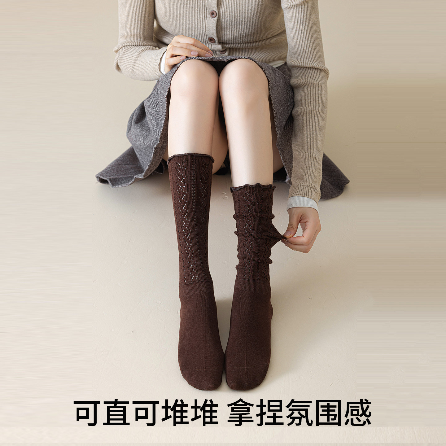 📚 花边堆堆袜子女夏季薄款中筒袜春秋镂空透气芭蕾miu系纯色小腿袜