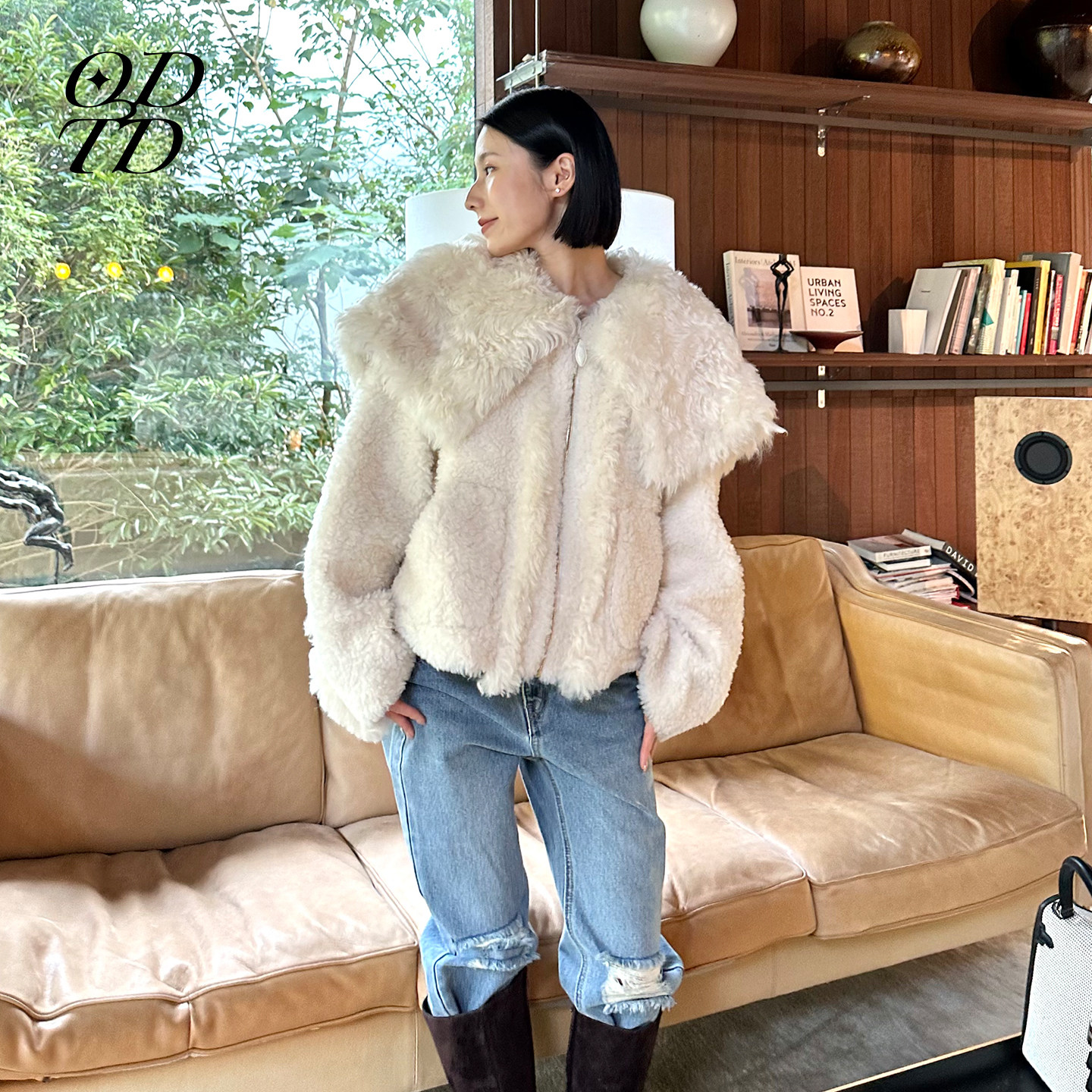 📚 【设计师女装】ODTD秋冬新款大翻领拉链托卡羊毛皮草外套毛绒感