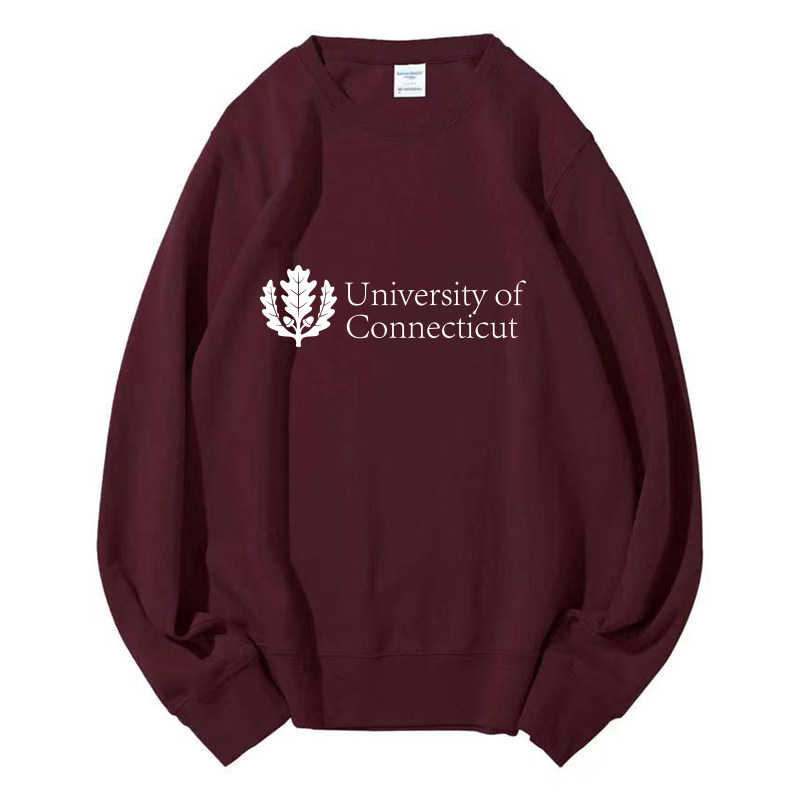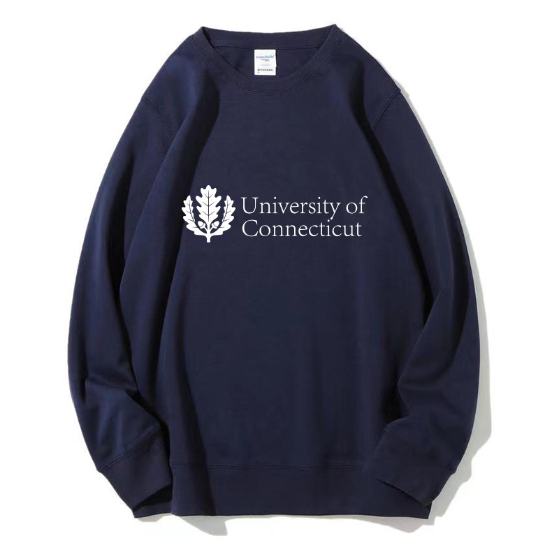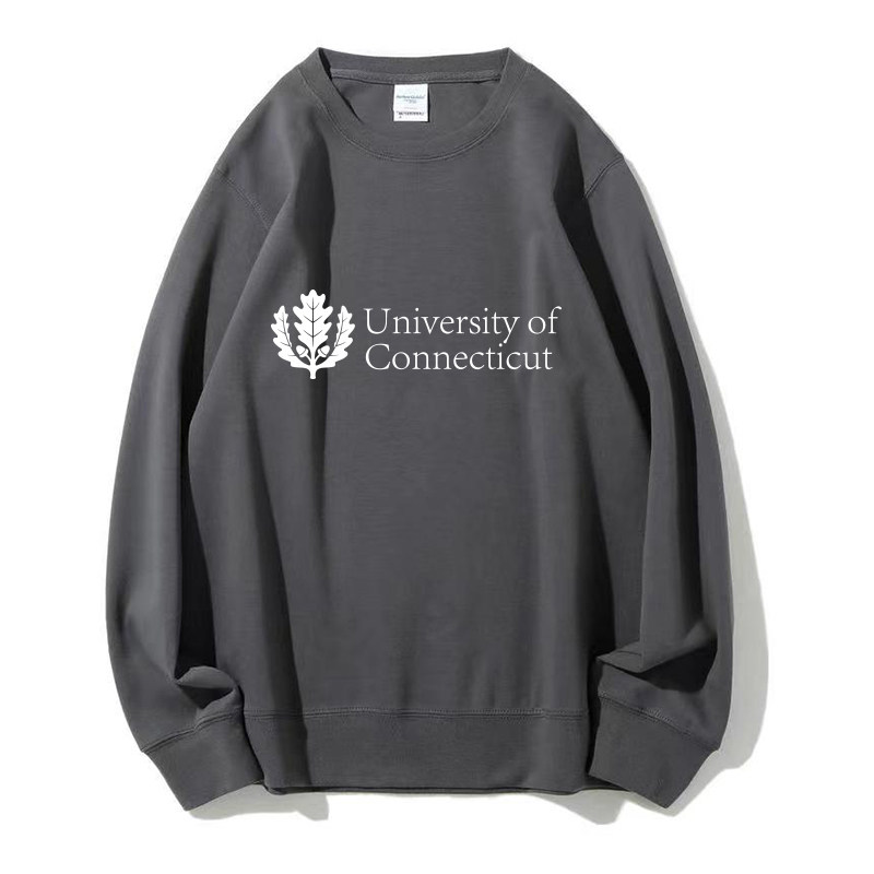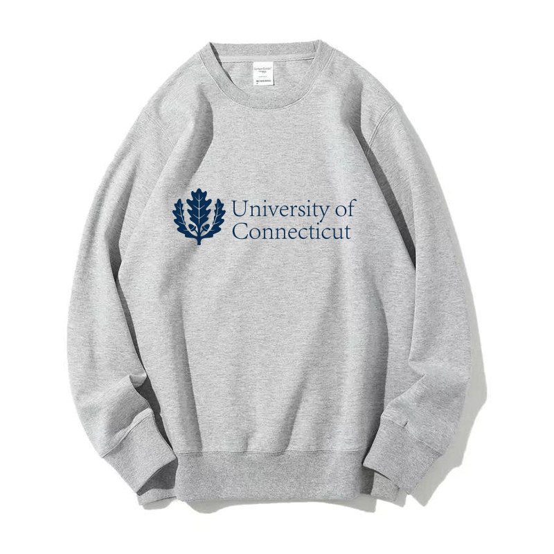 📚 UCONN康涅狄格大学 圆领卫衣加绒外套纪念品周边大学生班服定制