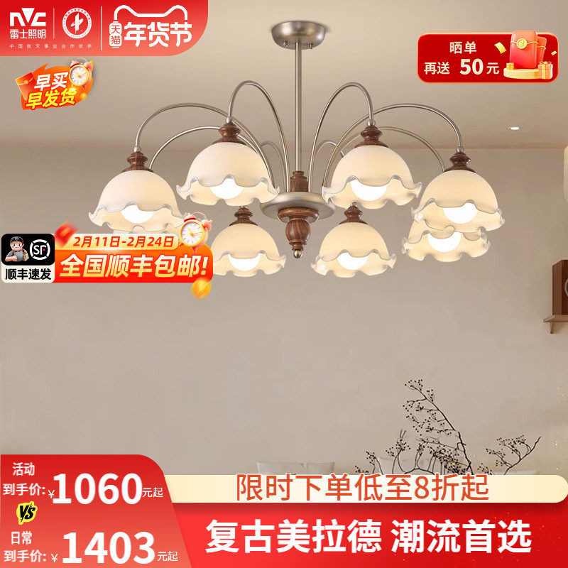 📚 雷士照明客厅吊灯大厅主灯花簇奶油风2026新款中古风法式中山灯具