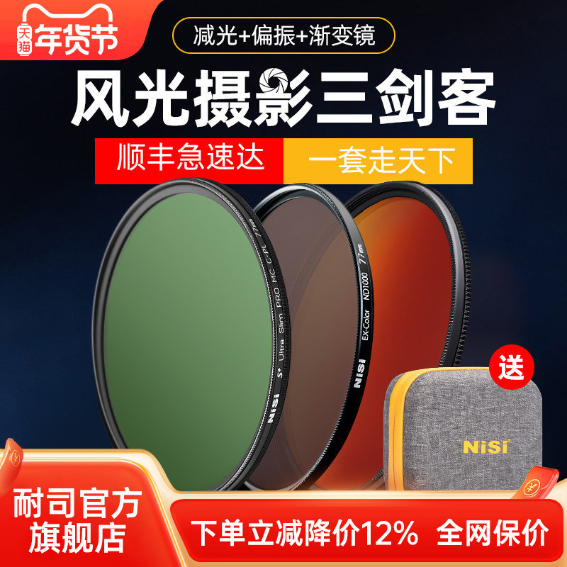 📚 NiSi耐司 风光三剑客滤镜套装 偏振镜CPL 减光镜ND镜 渐变镜GND16风光摄影适用于佳能索尼相机微单反滤镜套装