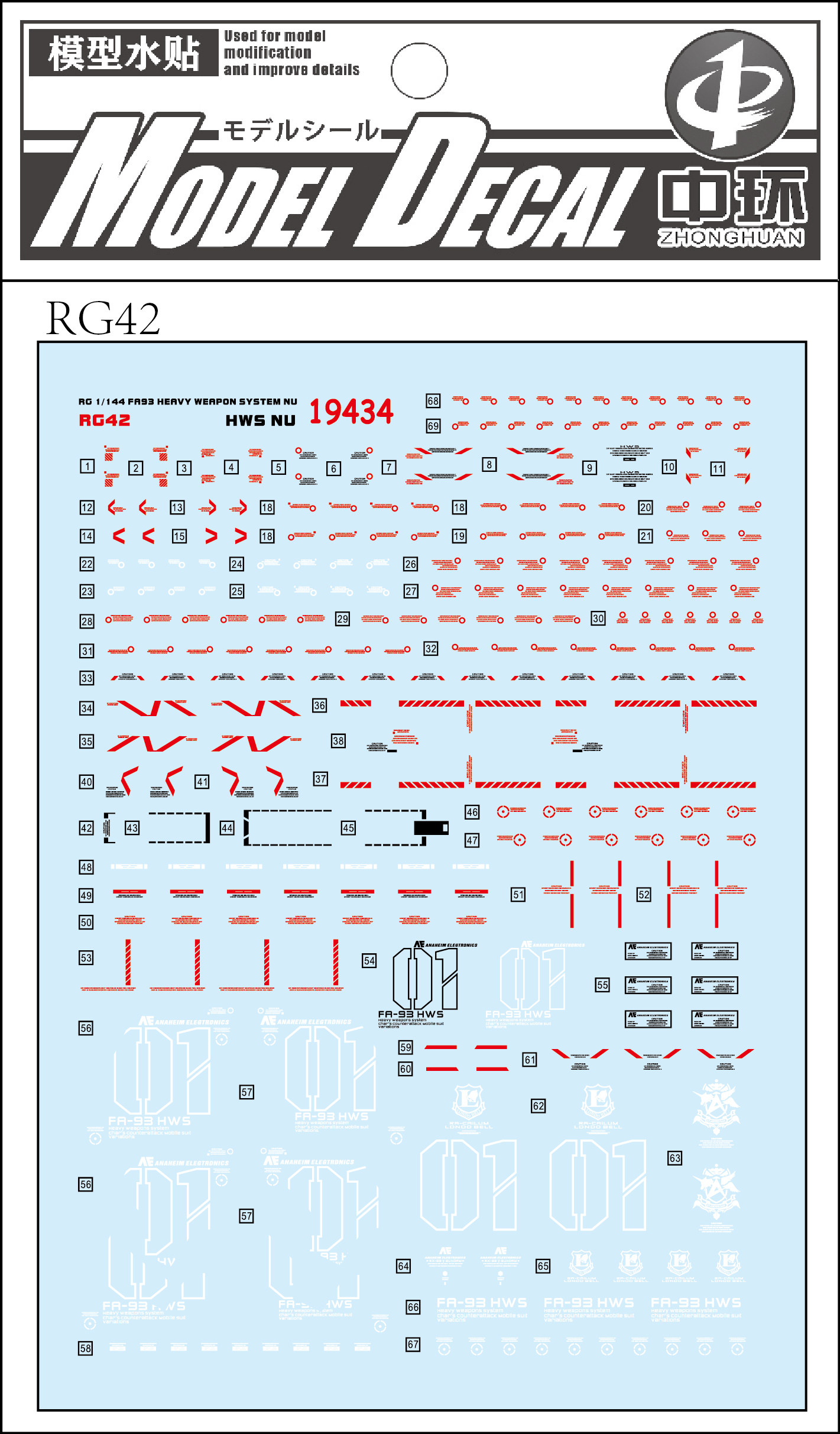📚 钢铁苍穹 中环 434 RG 1/44 PB限定HWS重装牛高达专用水贴 配万代