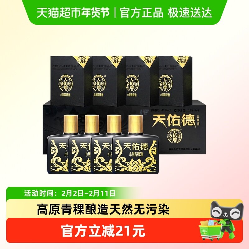 📚 天佑德青稞酒小黑礼盒42度125ml*4瓶清香型白酒青海湖特产送礼
