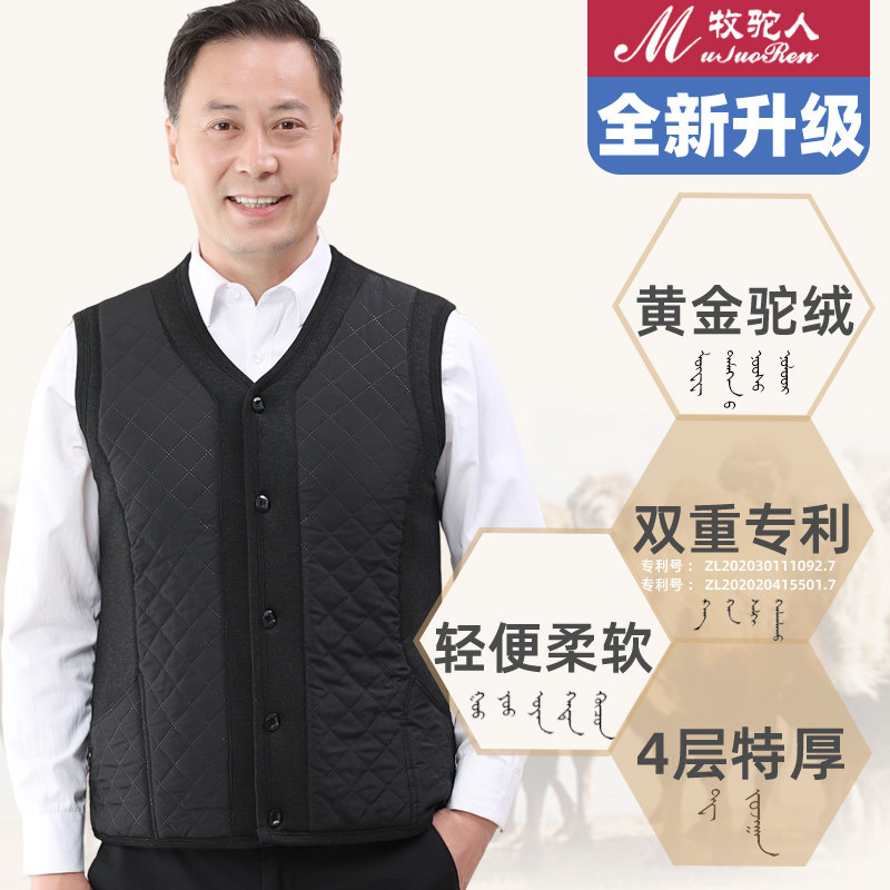 📚 中老年男驼绒棉马甲爸爸装加厚保暖坎肩老头背心居家大码加绒老人