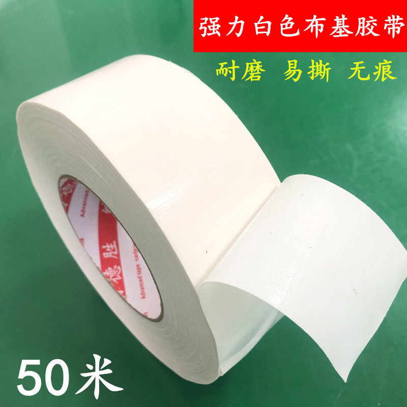 📚 强力高粘性白色布基胶带 单面白色地毯胶带 固定地毯地膜瓷砖保护膜高粘度防水白色胶带空调管道密封装饰50米