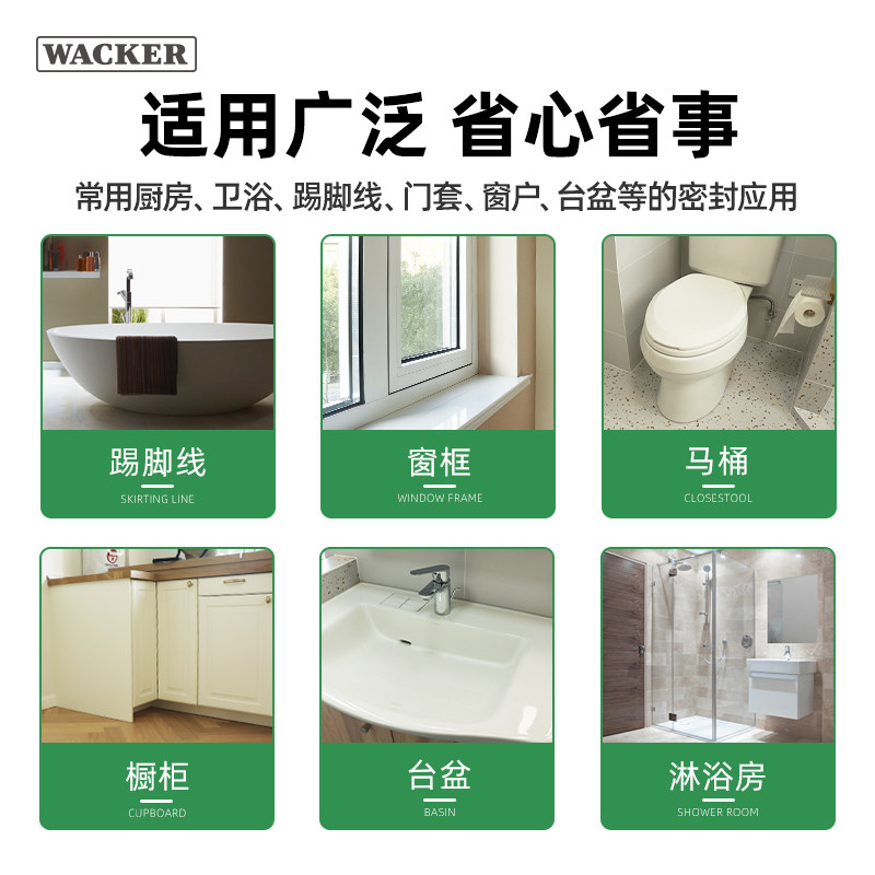 📚 德国品牌瓦克DA Plus厨卫防水防霉玻璃胶中性透明美容胶密封白色