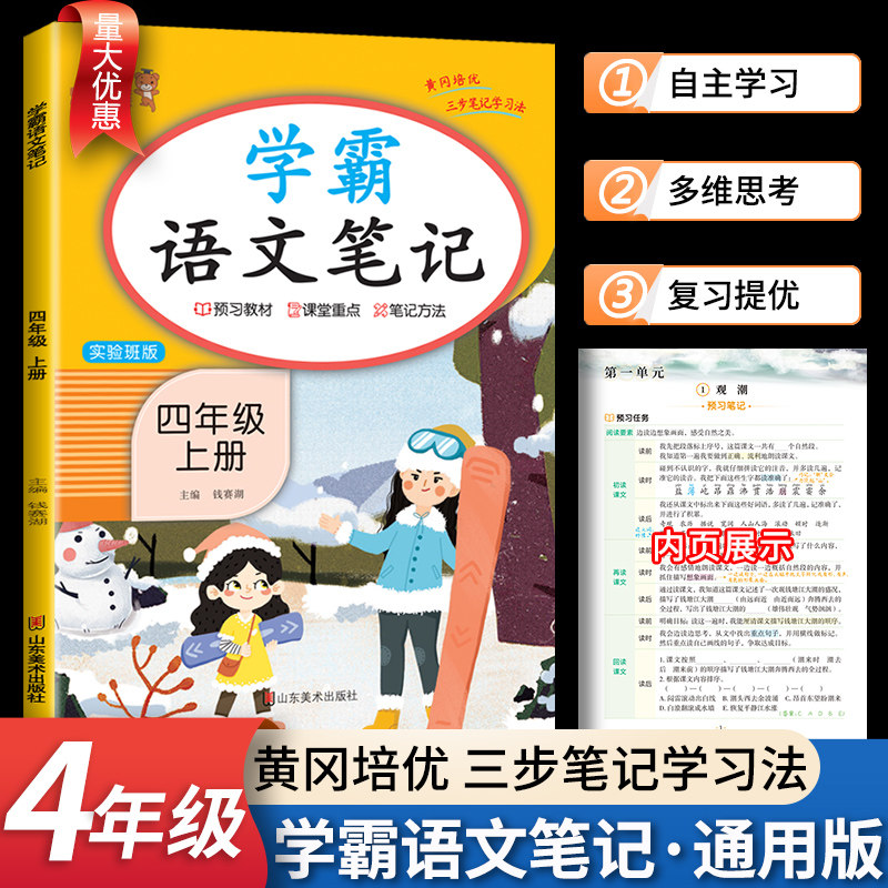 📚 【量大优惠】小学生四年级上册学霸语文笔记人教版试验班版同步课本部编版课堂笔记学霸随堂笔记教材解读全解复习预习