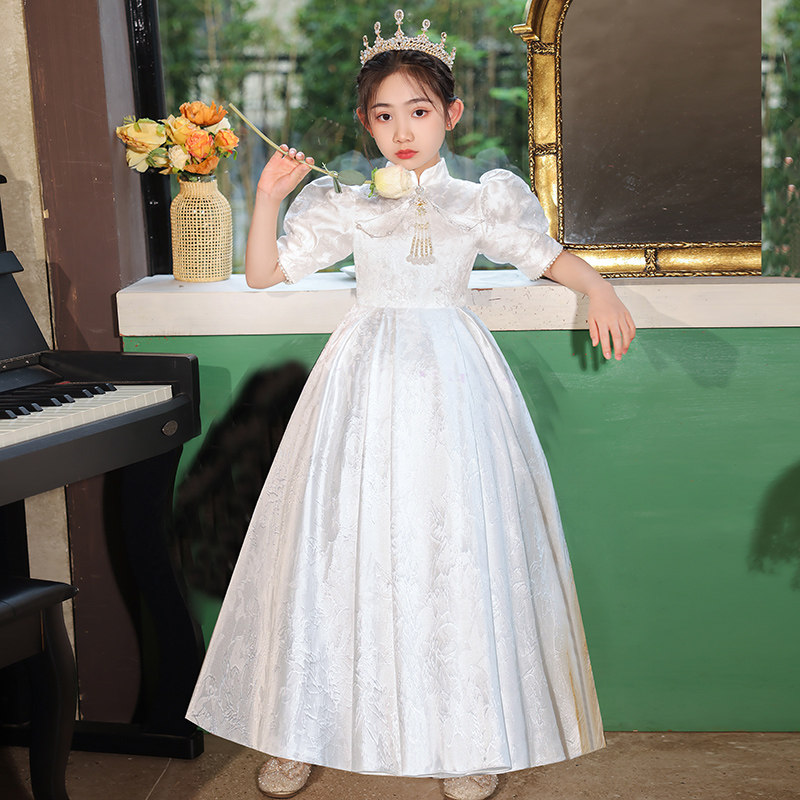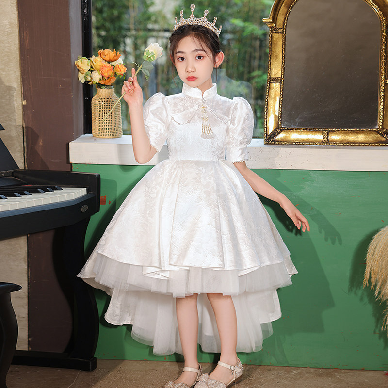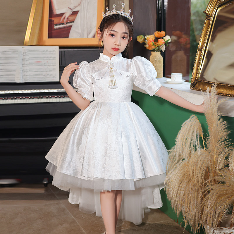 📚 女童旗袍高端公主裙白色儿童唐装女孩诗歌朗诵新中式演出礼服夏季
