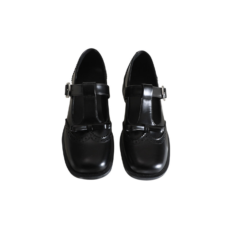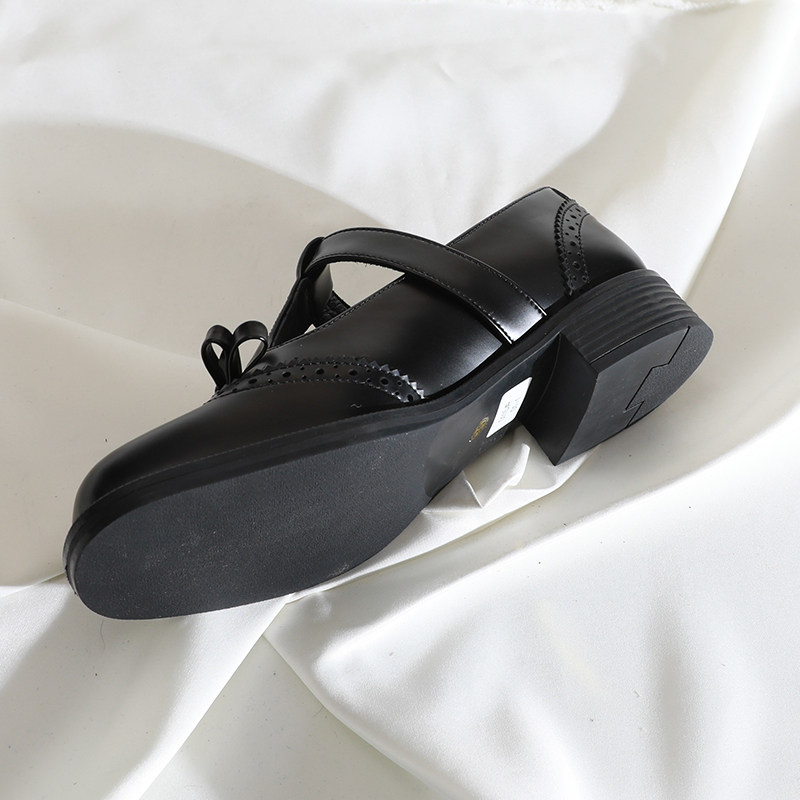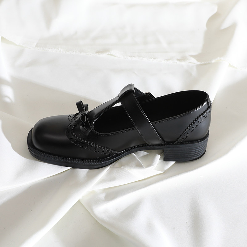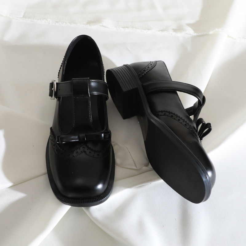 📚 莲花府邸2025春季复古单鞋蝴蝶结丁字扣玛丽珍百搭布洛克牛皮女鞋