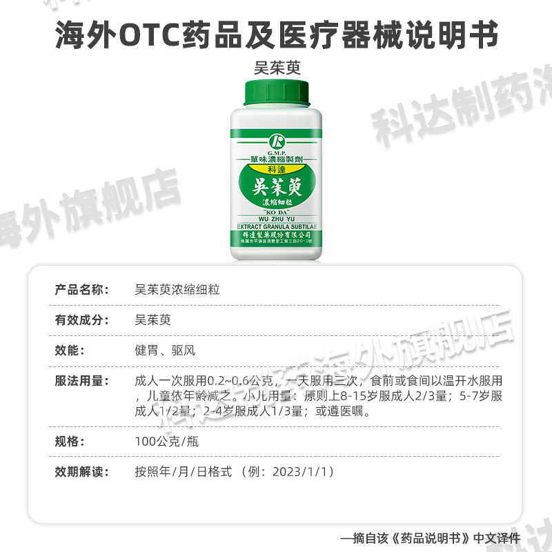 📚 科达制药科达吴茱萸单味浓缩中药浓缩颗粒健胃驱风胃寒腹痛台湾正