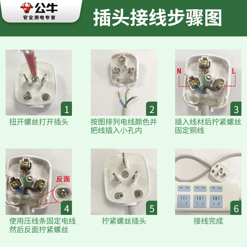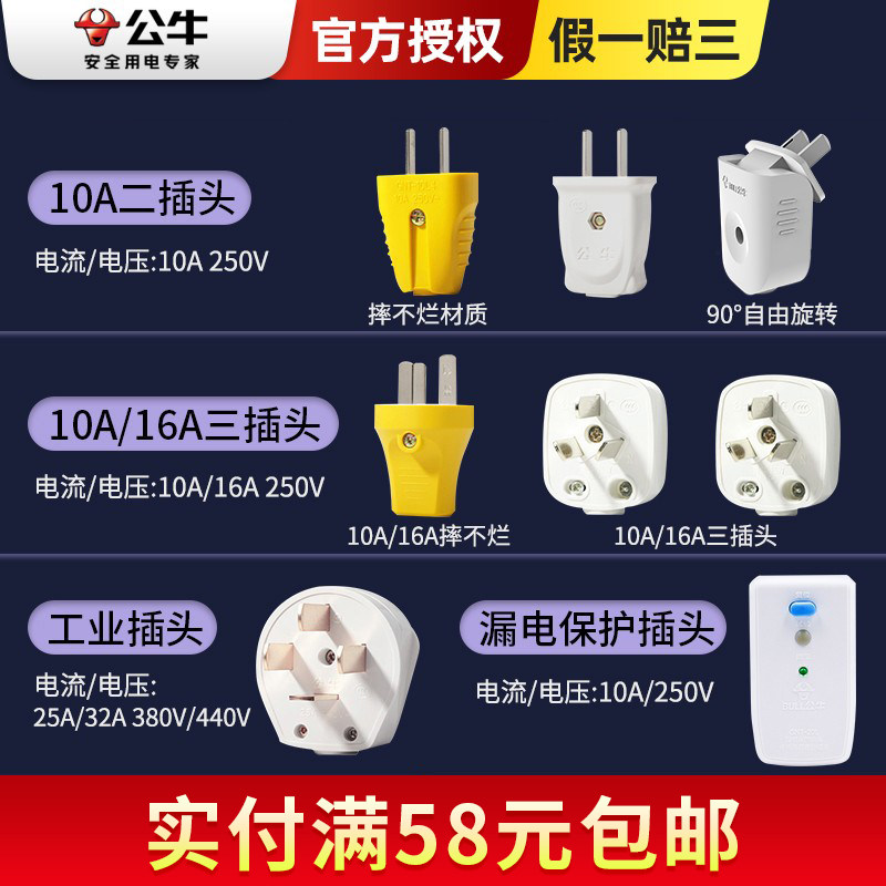 📚 公牛插头10A二脚16A三相三角空调热水器漏电保护器电源插座不带线