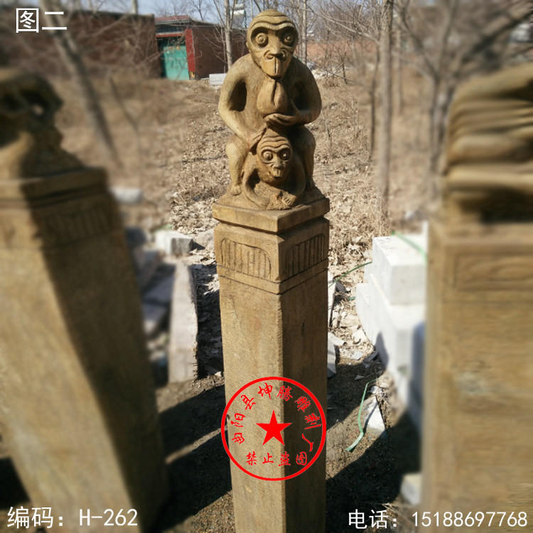 📚 石雕栓马桩 仿古做旧雕刻青石拴马桩 石雕猴子马上封侯拴马柱