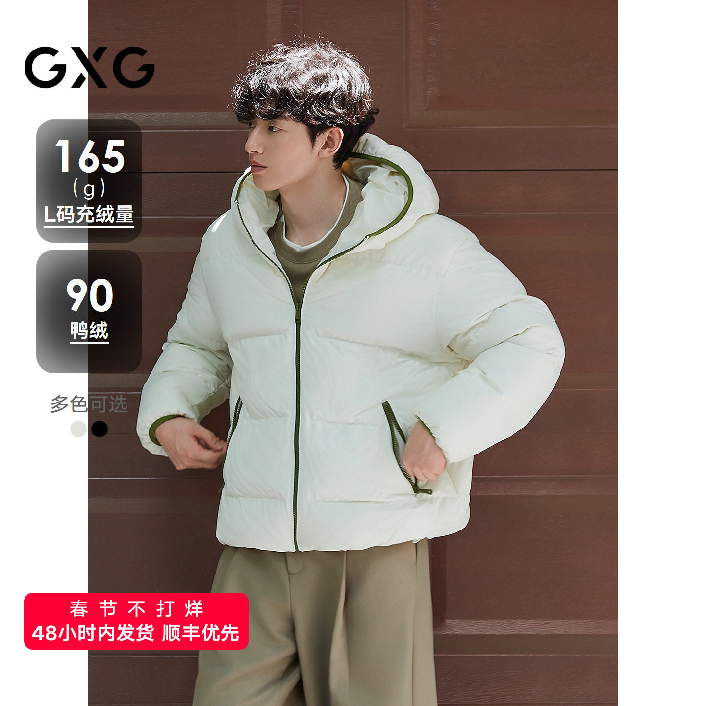 📚 GXG男装 撞色连帽面包服保暖厚外套多色短款羽绒服 25年冬新品