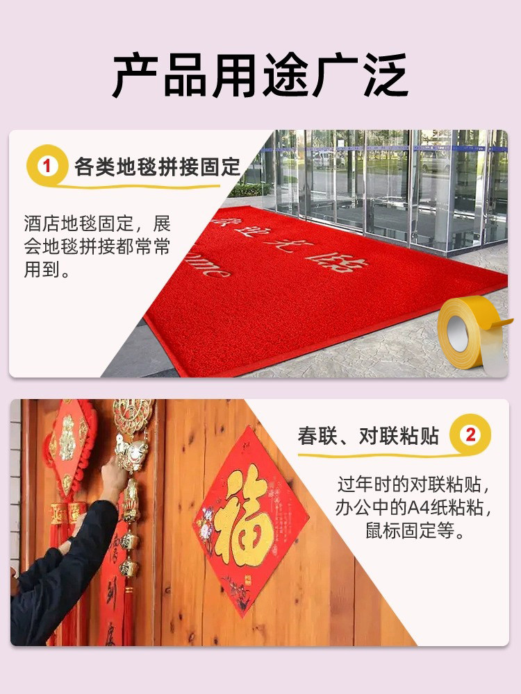 📚 贴对联春联无痕胶双面胶高粘度网格布基胶带强力固定贴粘地毯不留痕防水透明墙面耐高温地板地垫革拼接免打孔