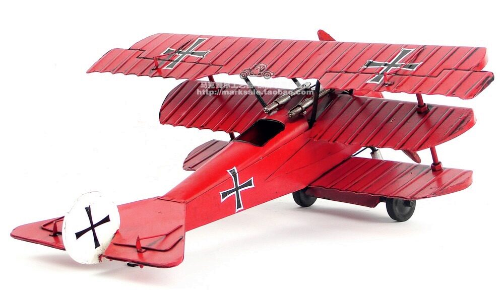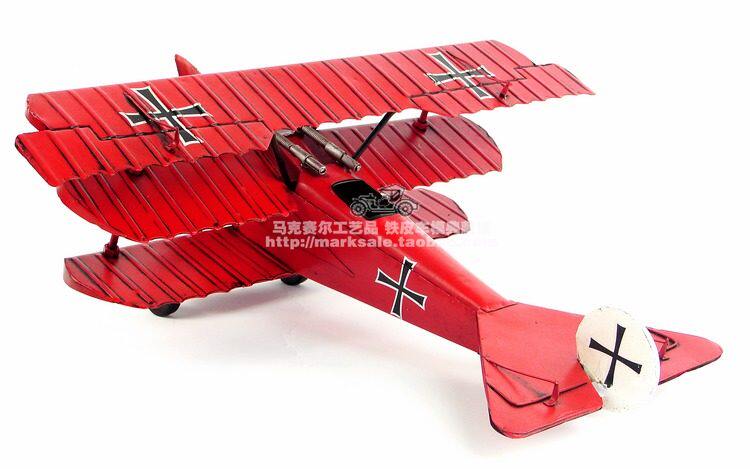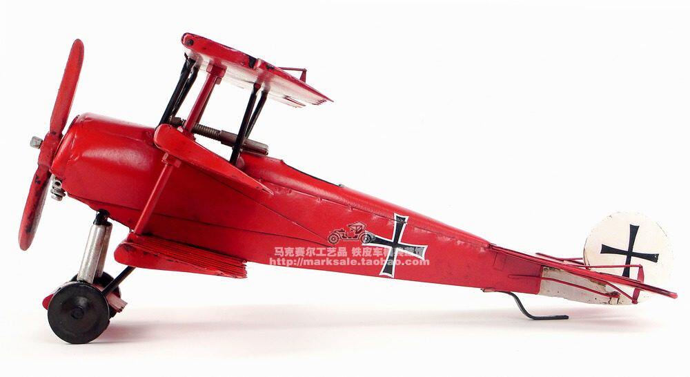 📚 铁皮仿古飞机模型 一战德国红男爵战斗机工艺品装饰摆件道具礼物