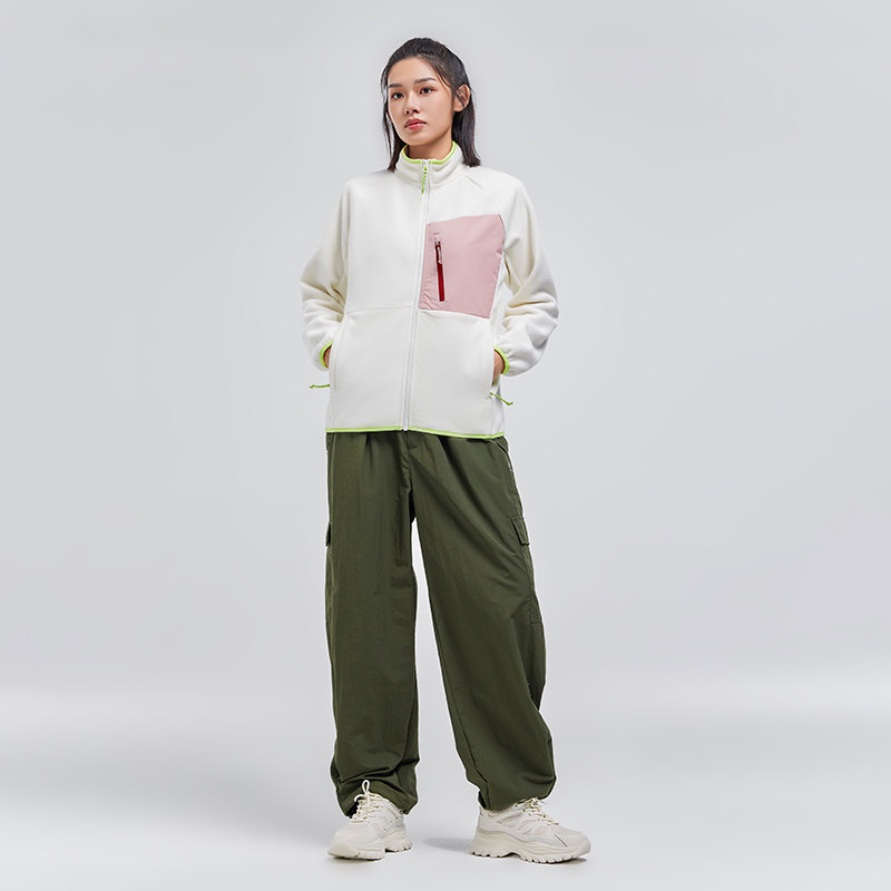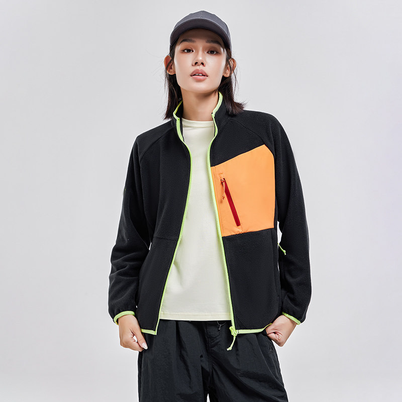 📚 拓路者撞色抓绒衣女款春秋前胸口袋户外时尚加绒保暖立领开衫外套