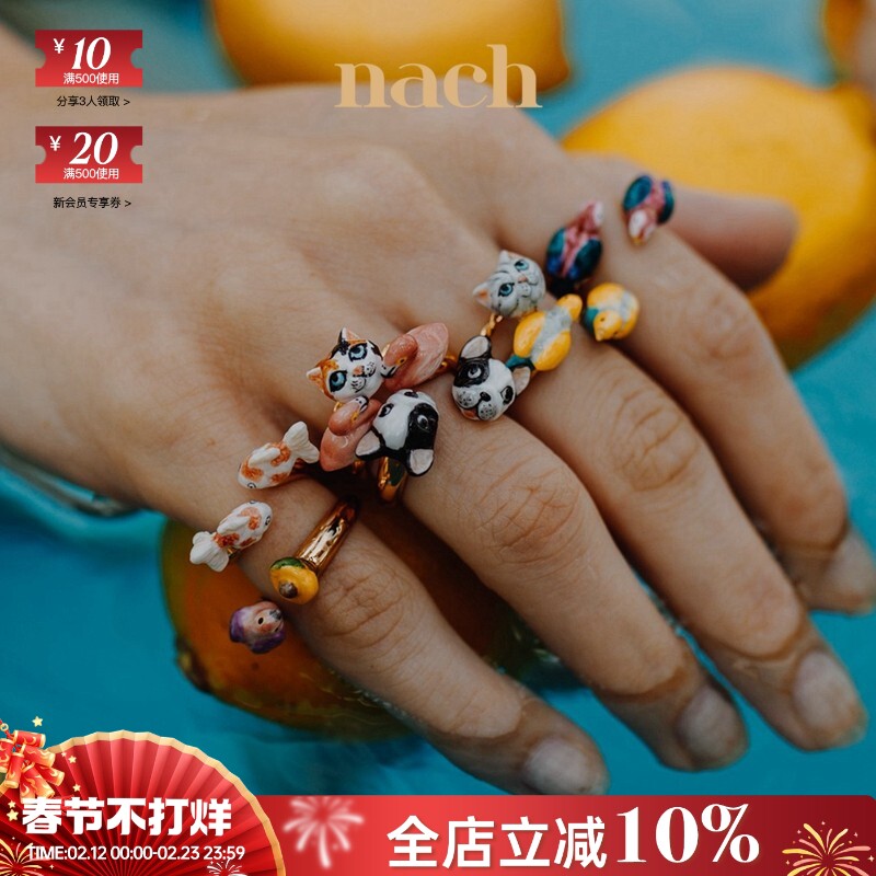 📚 【官方授权】NACH娜趣法国小动物火烈鸟鹦鹉锦鲤猫狗猎豹花朵戒指