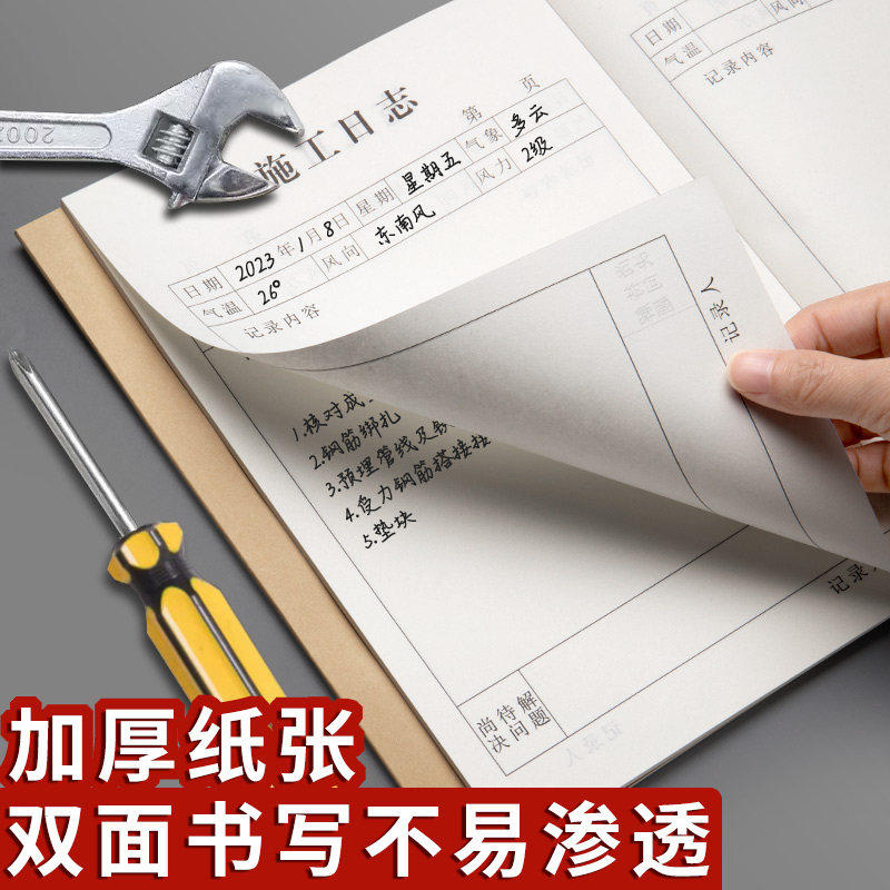 📚 思进加厚安全施工日志记录本16K双面工程施工日记本通用加厚A4记录单面工地监理日志企业单位工作40页进度本