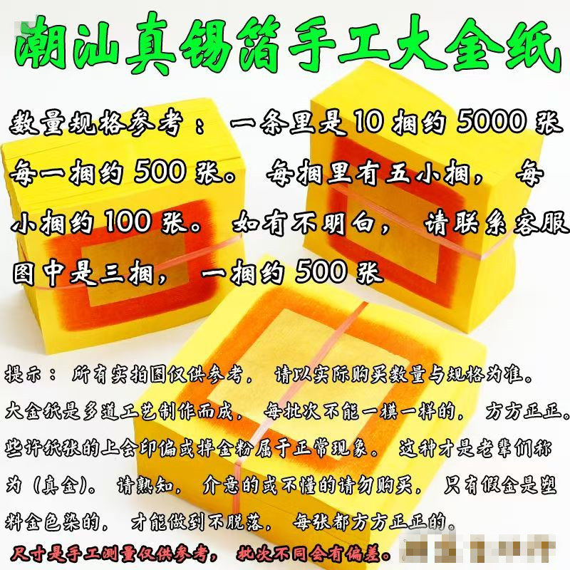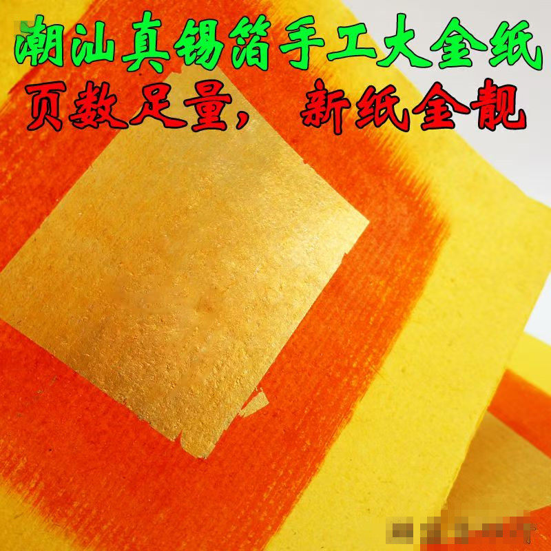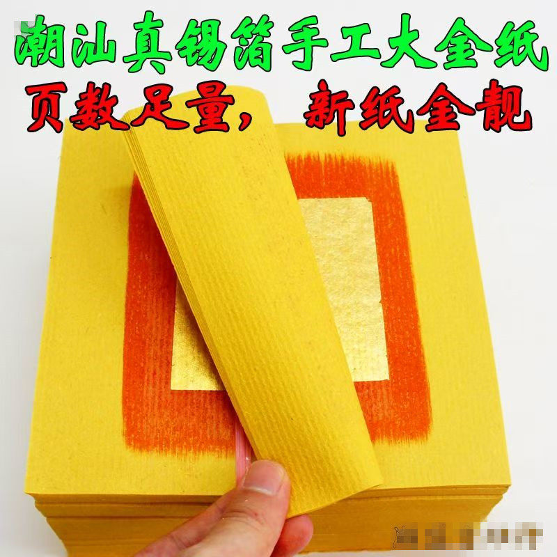 📚 潮汕大金包邮真锡箔寿金纸中秋拜拜用伯公财神爷折塔纸金箔纸普宁