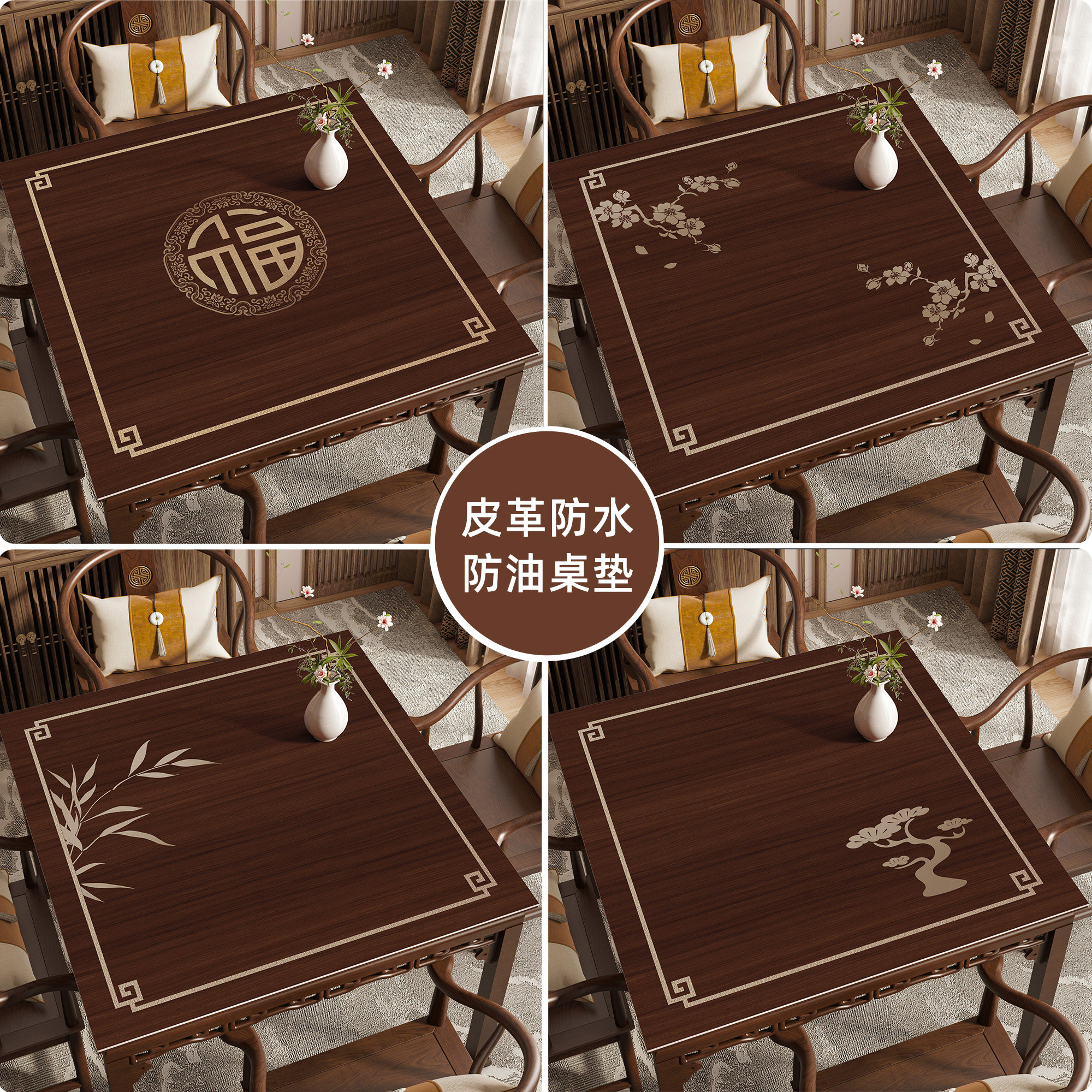 📚 新中式正方形餐桌桌垫实木茶几防水防油防烫可擦洗四方桌皮革桌布