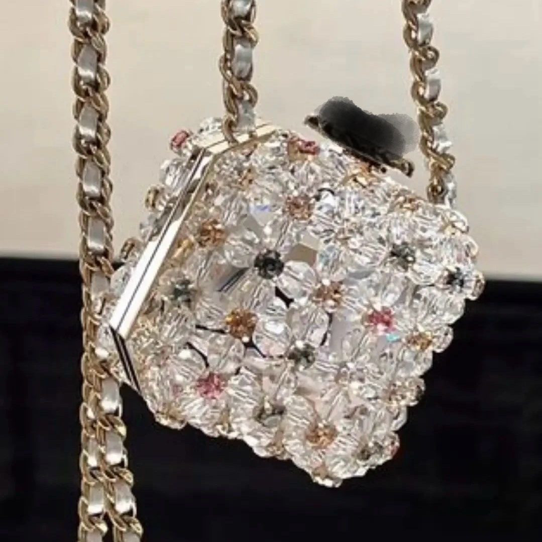📚 2023限量珍珠clutch盒子包mini水晶链条斜挎单肩包小废包