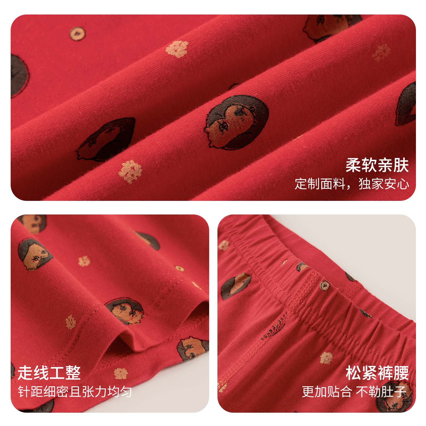 📚 栀柔男孩纯棉平角内裤红色本命年新年好运卡皮巴拉印花四角裤限定