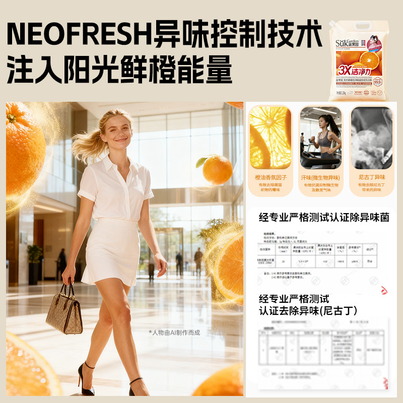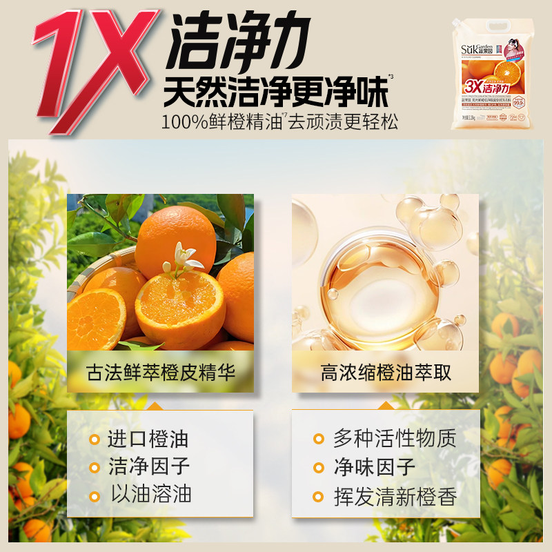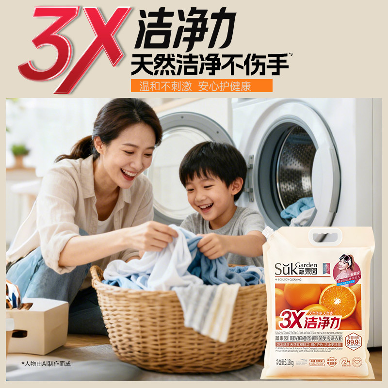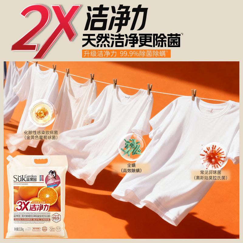📚 蔬果园阳光鲜橙免搓洗衣粉深层清洁持久留香护色增亮除菌除螨家用