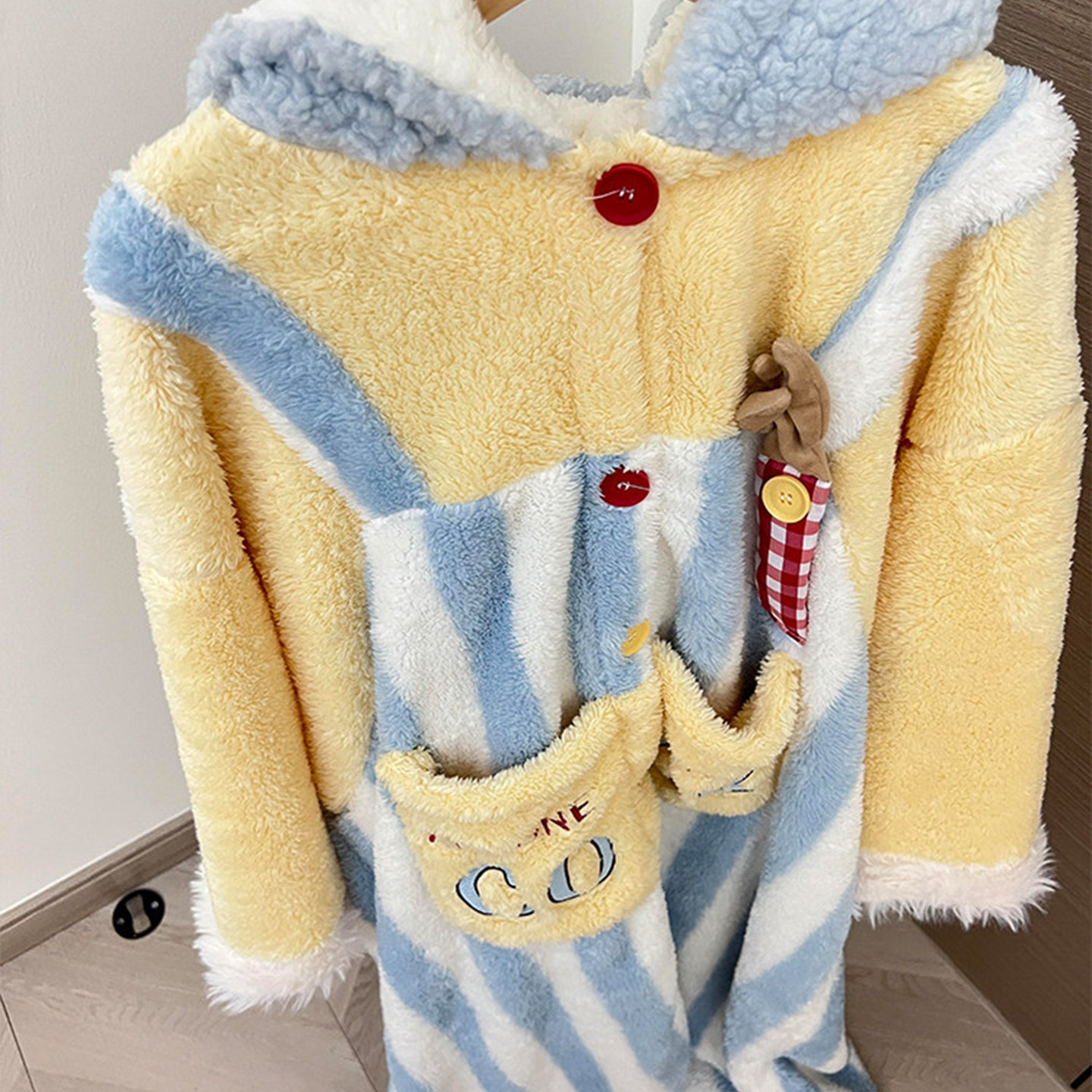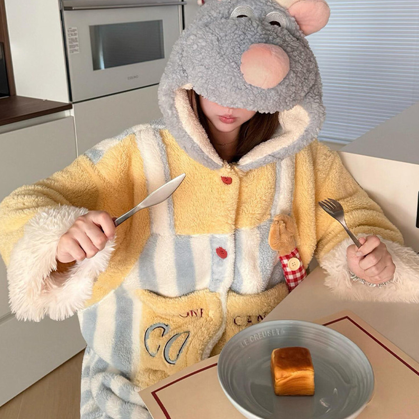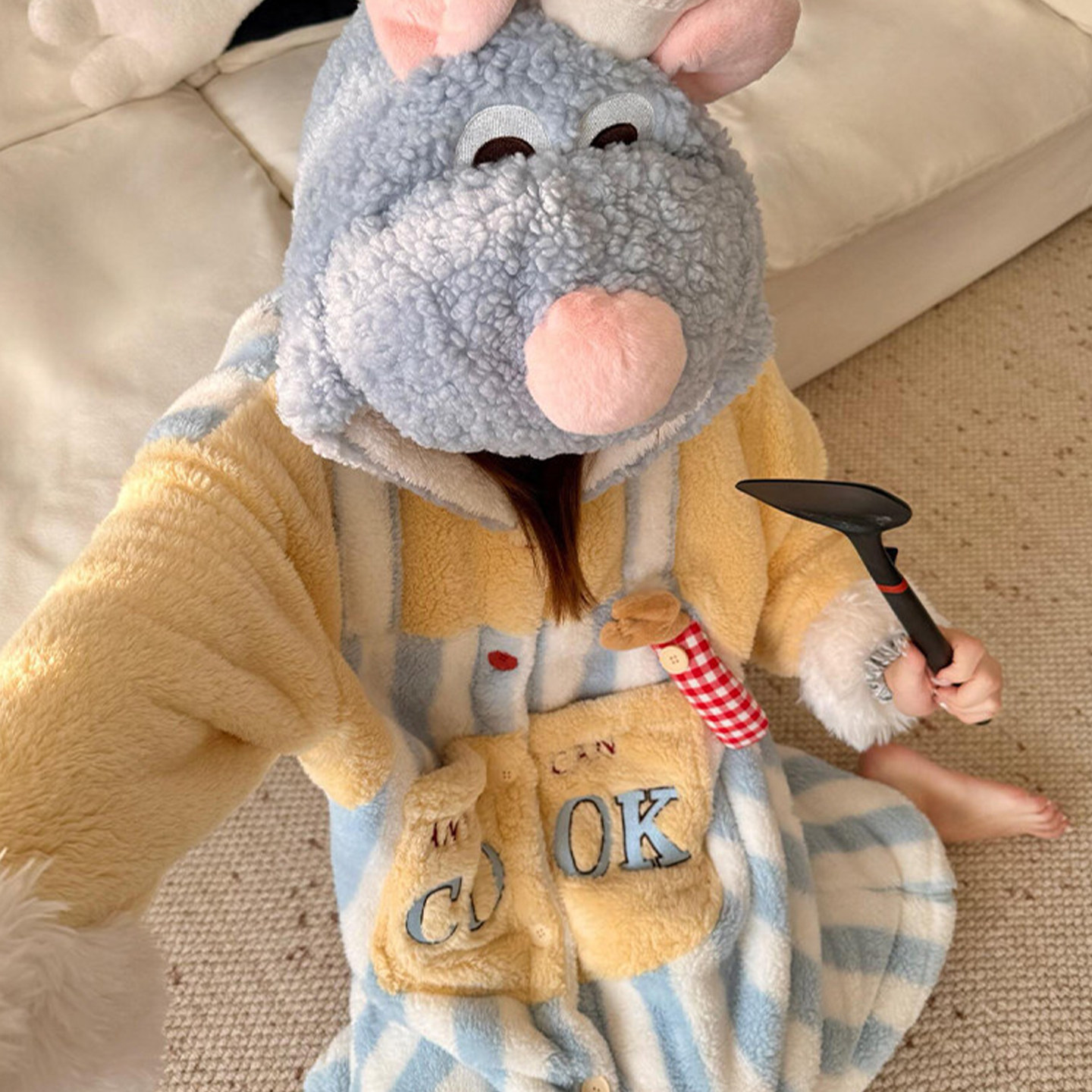 📚 料理鼠王珊瑚绒睡衣女情侣新款冬季加绒加厚卡通睡袍男家居服套装