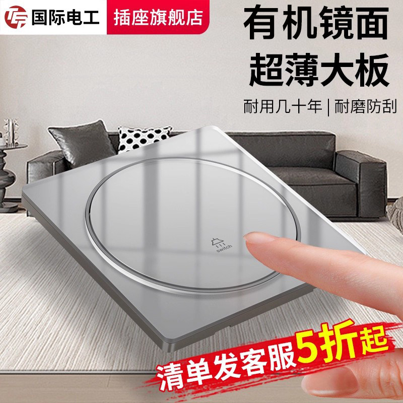 📚 TEP国际电工86家用暗装水晶镜面双控开关电源插座面板一开五孔usb