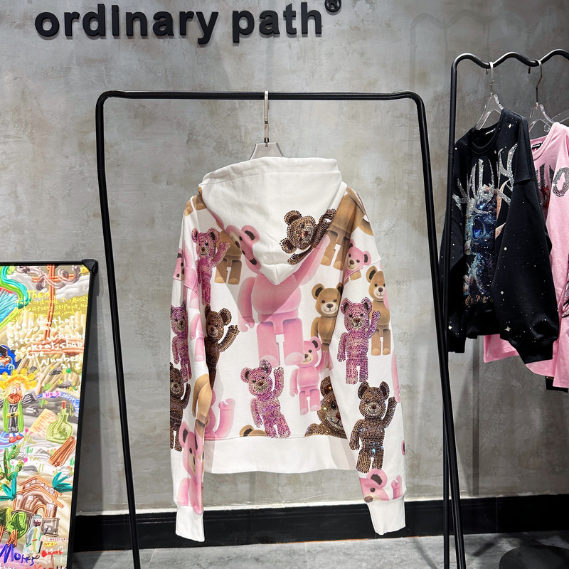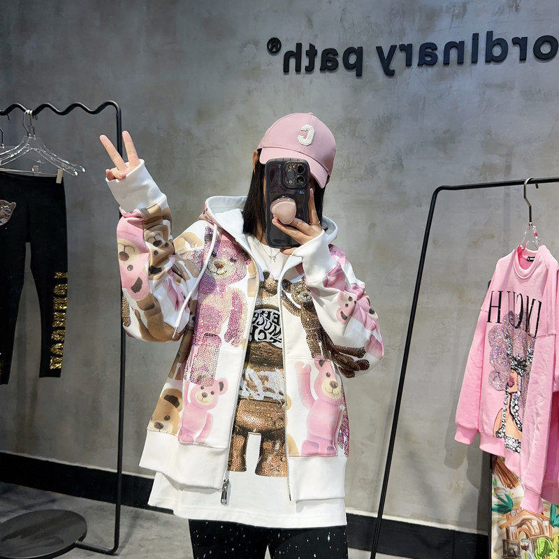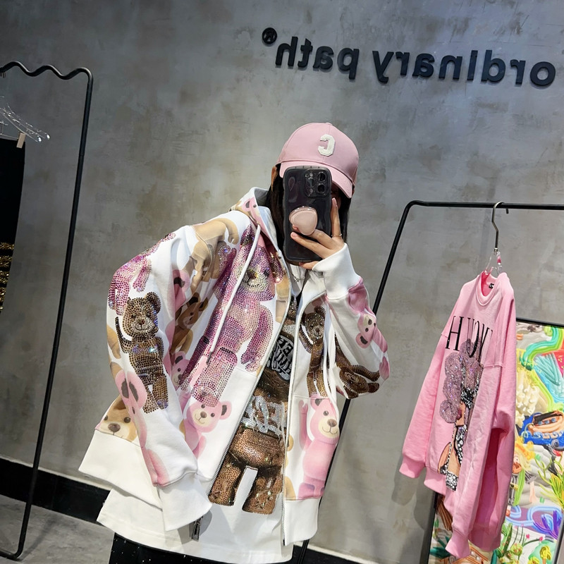 📚 潮牌春秋款连帽拉链开衫卫衣暴力小熊烫钻印花多巴胺可爱休闲外套