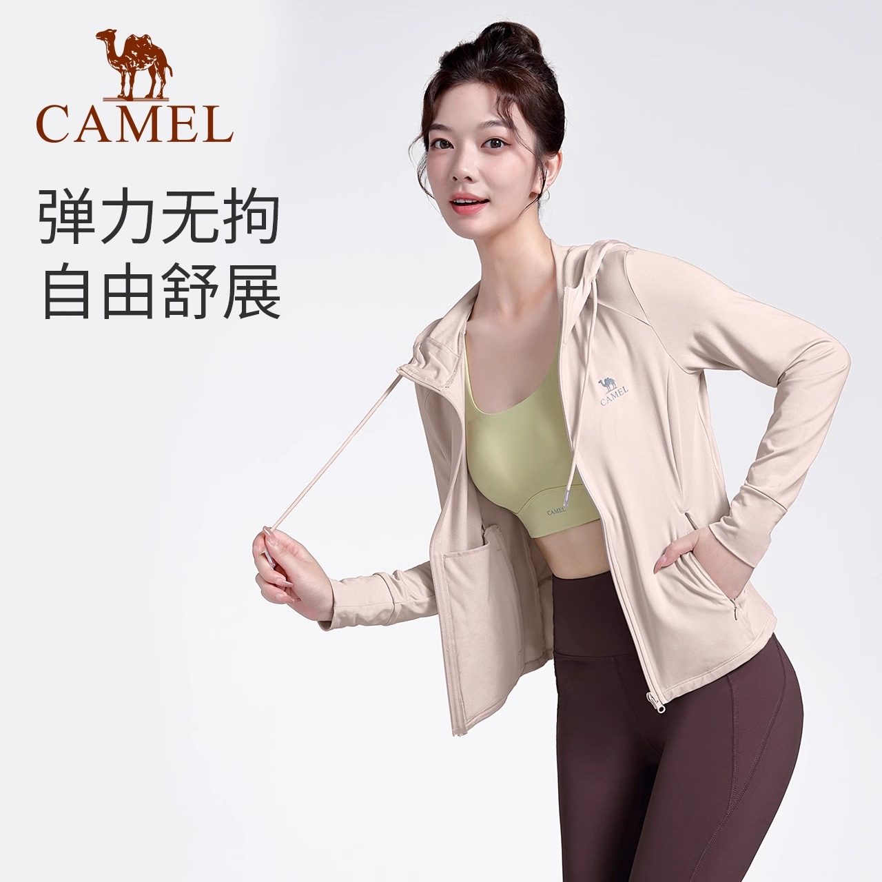 📚 骆驼女装瑜伽服秋冬季加绒外套修身健身服长袖开衫运动服外套