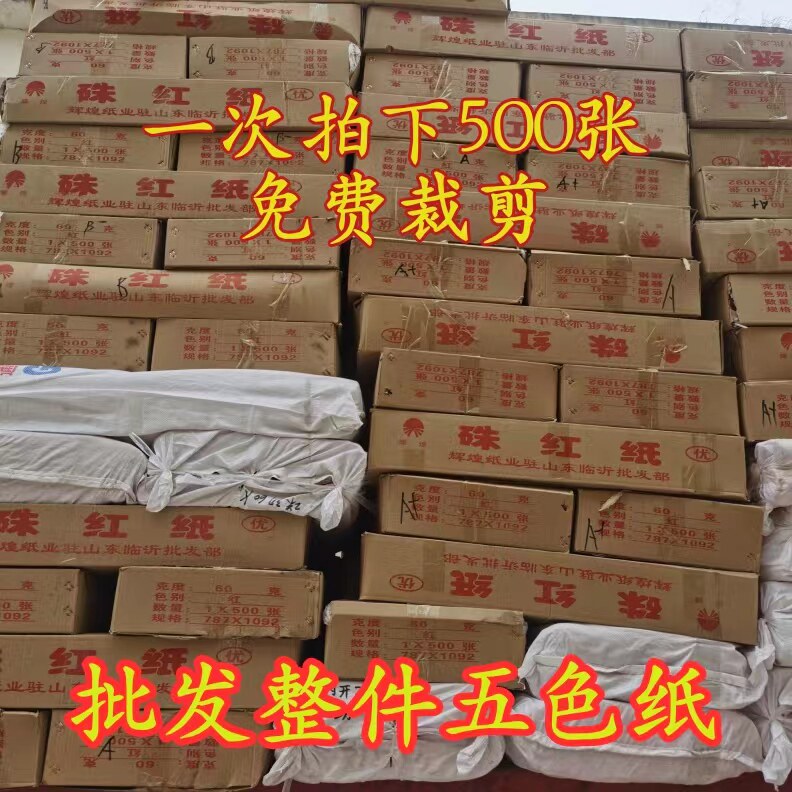 📚 单面五色纸厂家整件批发红纸黄纸绿纸蓝纸黑纸朱红纸全开大张红纸