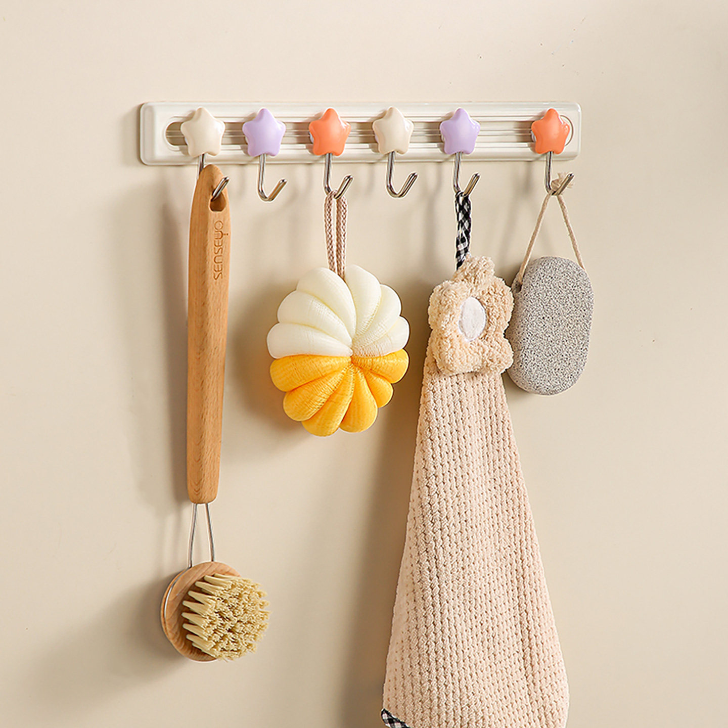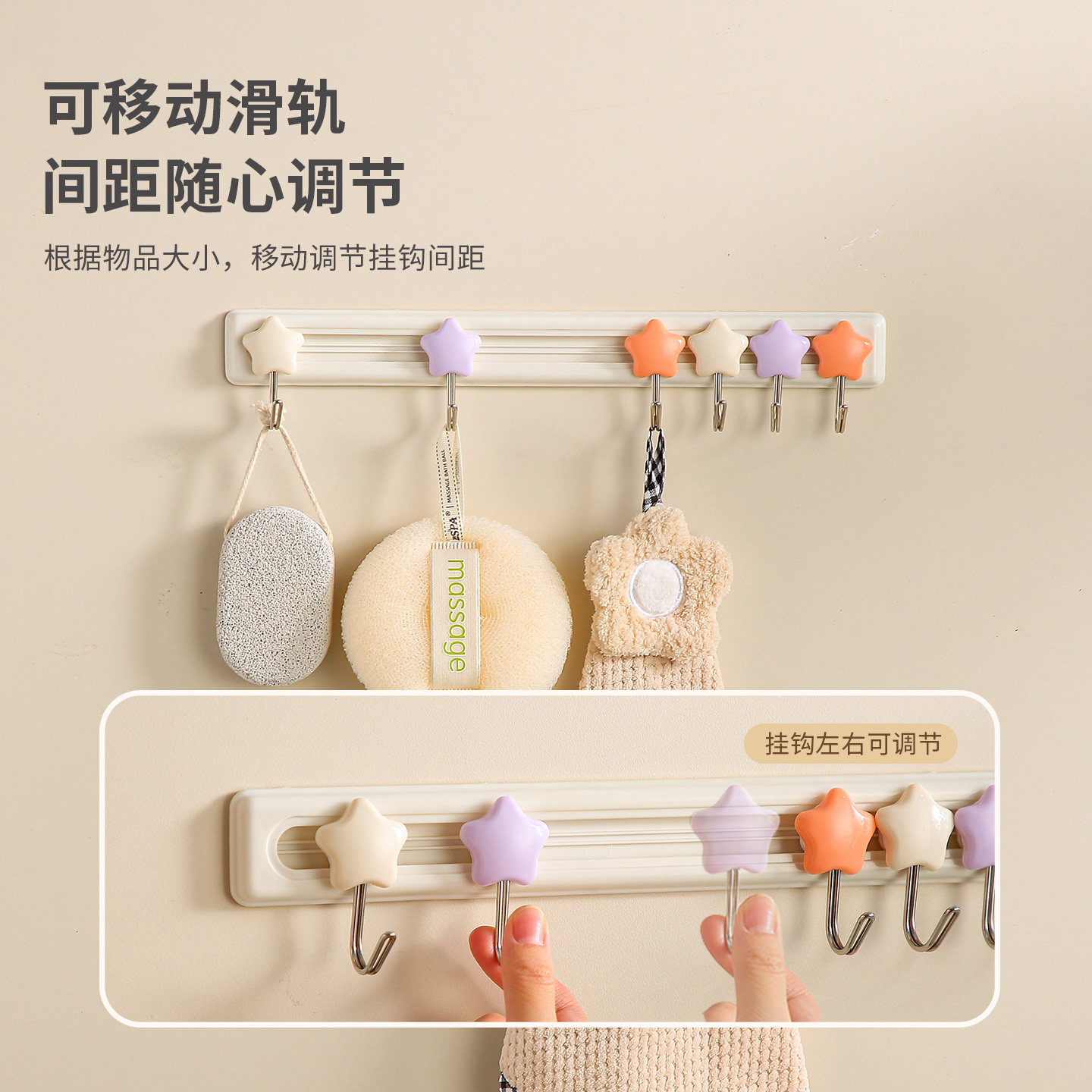 📚 可移动联排挂钩一连排免打孔强力承重浴室厨房玄关门后挂衣架粘钩