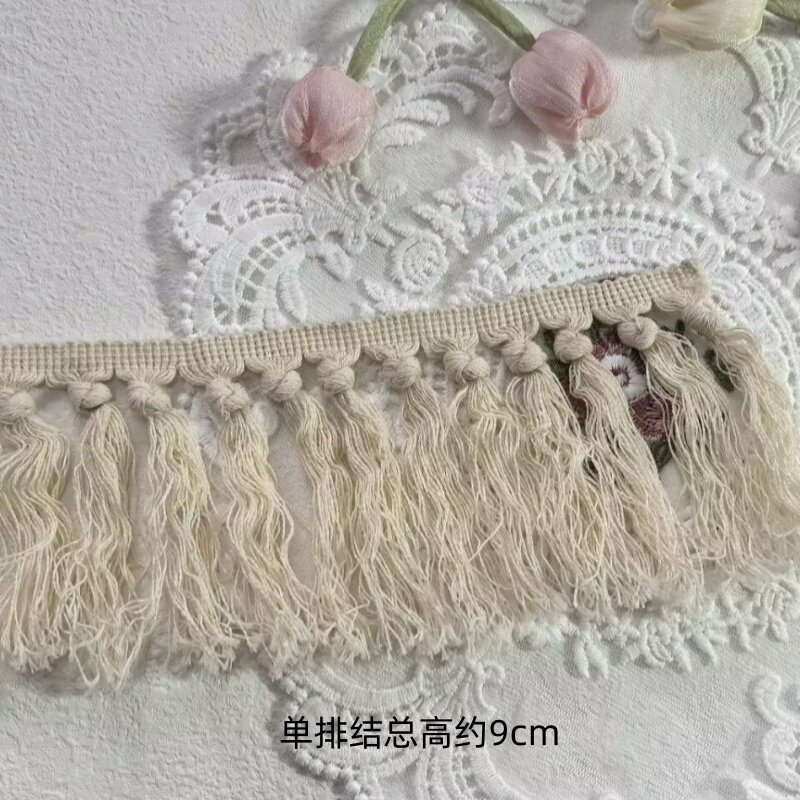 📚 单排结长流苏本白色棉线排须花边沙发窗帘吊穗桌布壁挂打结流苏