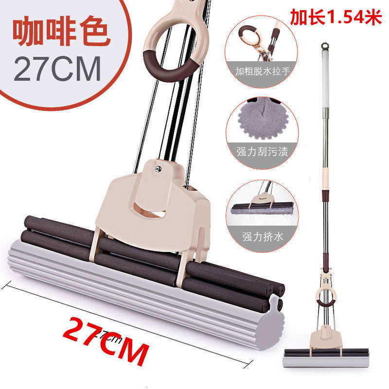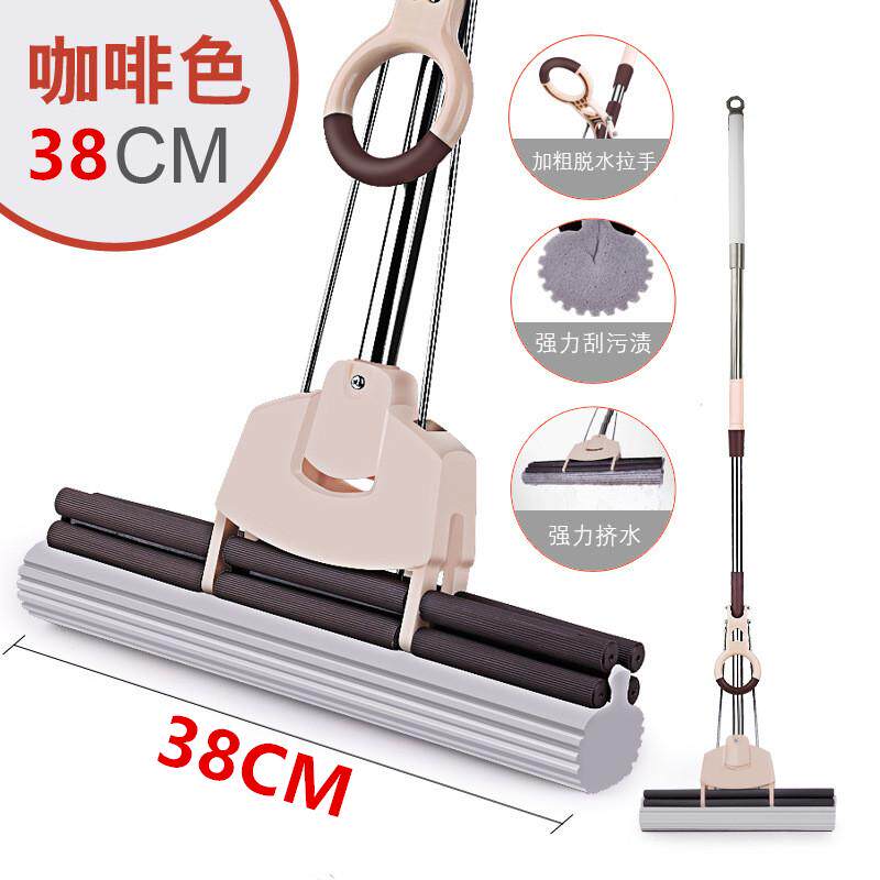📚 海绵拖把手长杆式胶棉拖把 55n伸缩墩布滚轮洗38cm杆吸水加大号免