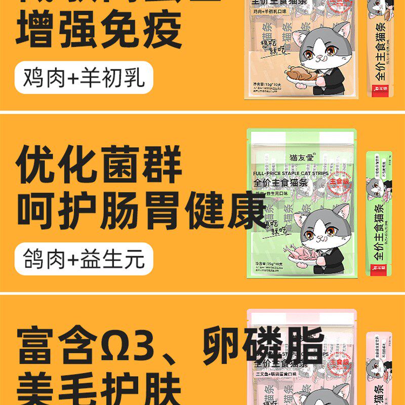 📚 猫友爱主食猫条全价湿粮交互营养幼成猫无谷增肥发腮美毛猫粮保湿