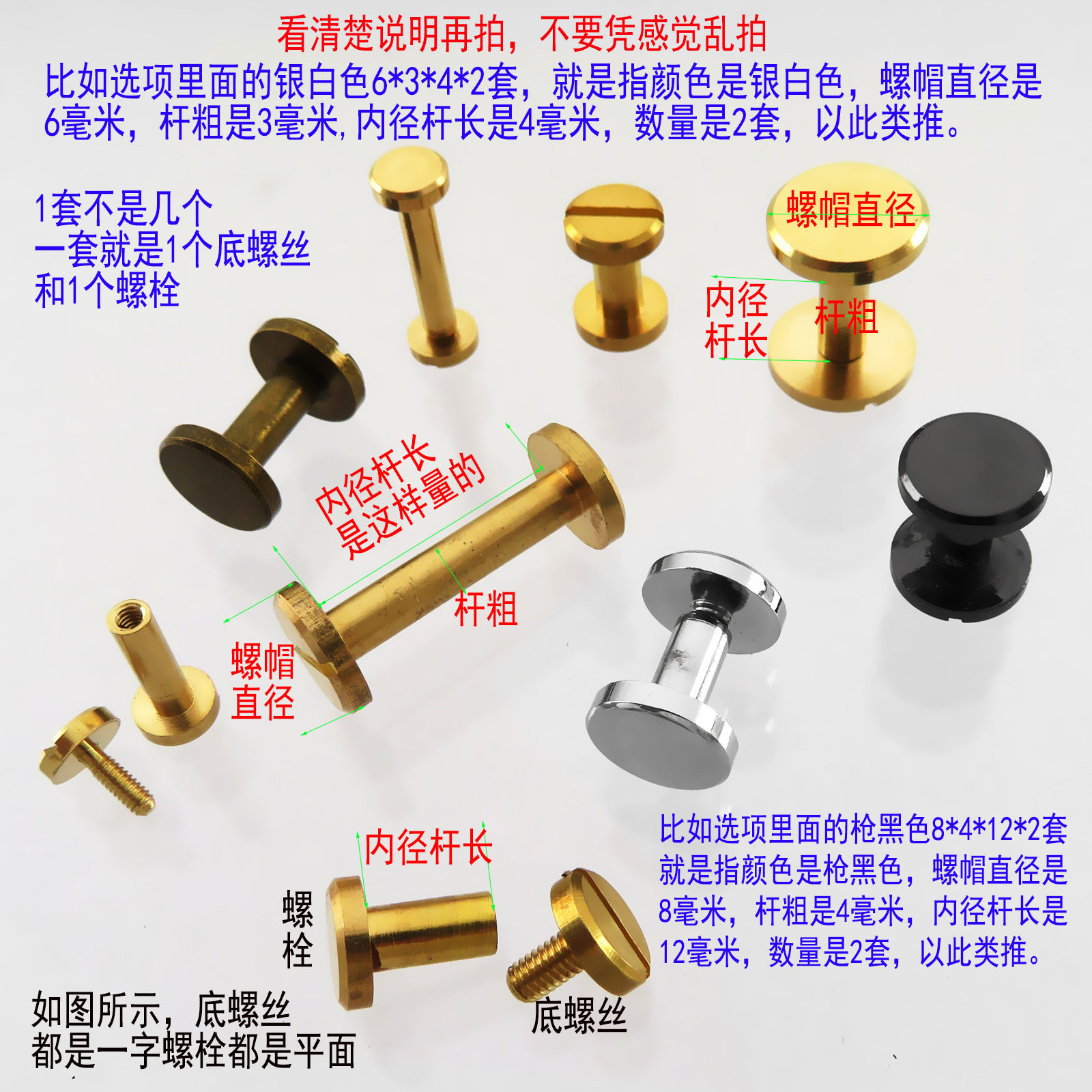 📚 箱包一字工字车轮黄铜纯铜账本铆钉扣子皮具肩带腰带螺丝公母螺栓