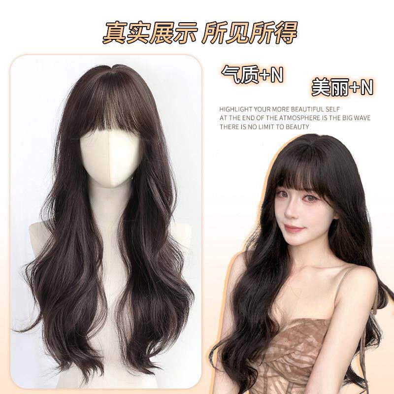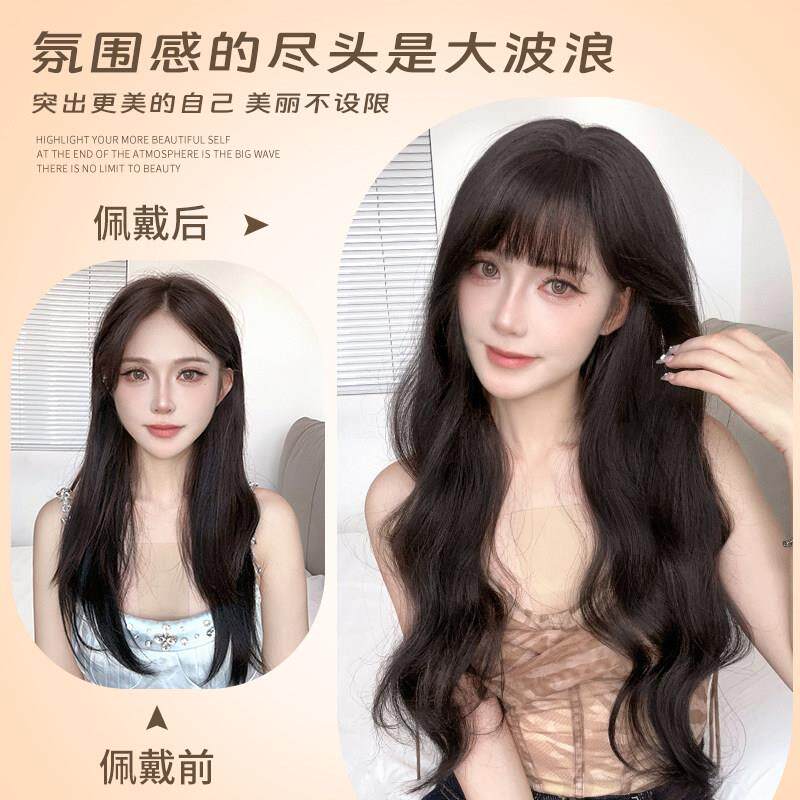 📚 不用戴发网假发女全头套头顶补发假发片长卷发大波浪齐刘海假发套