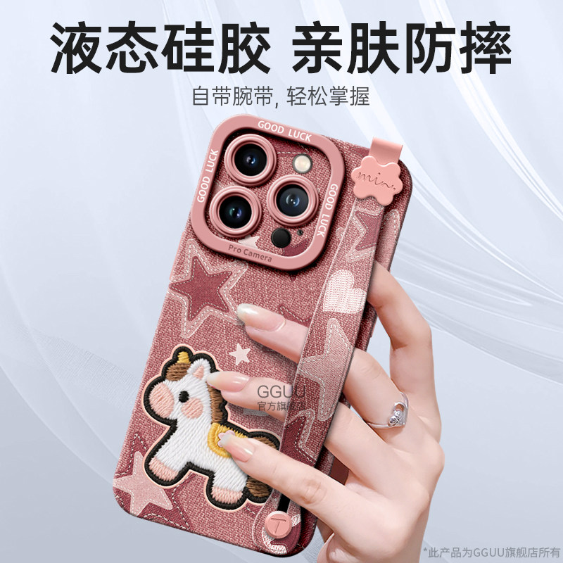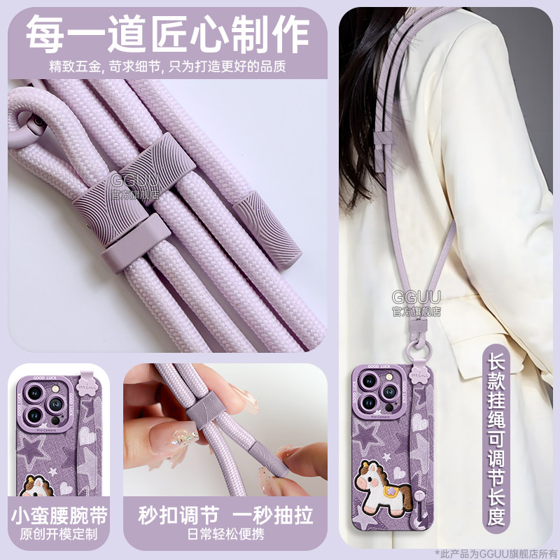 📚 GGUU适用苹果16promax手机壳iphone16pro套plus新款16腕15挂绳14硅胶13可背带斜挎链12星星小马11女的pro外ip