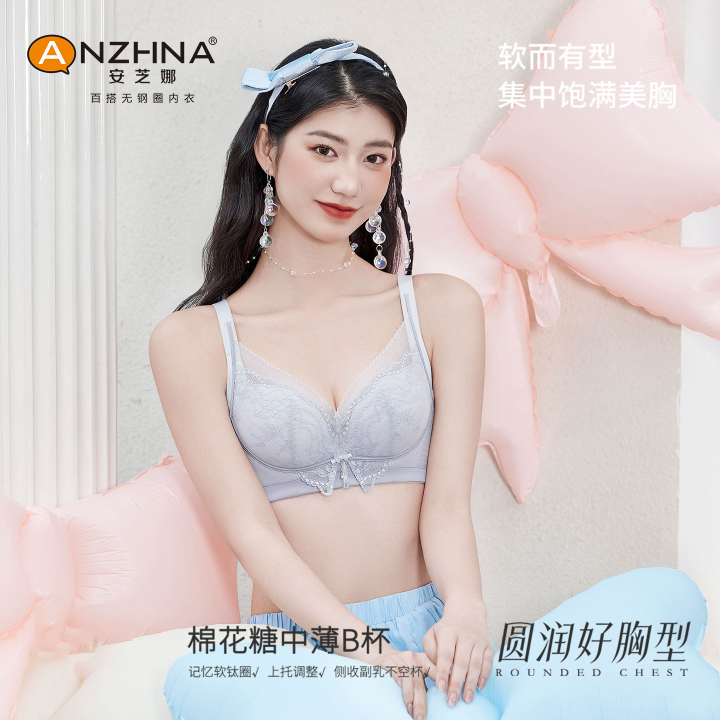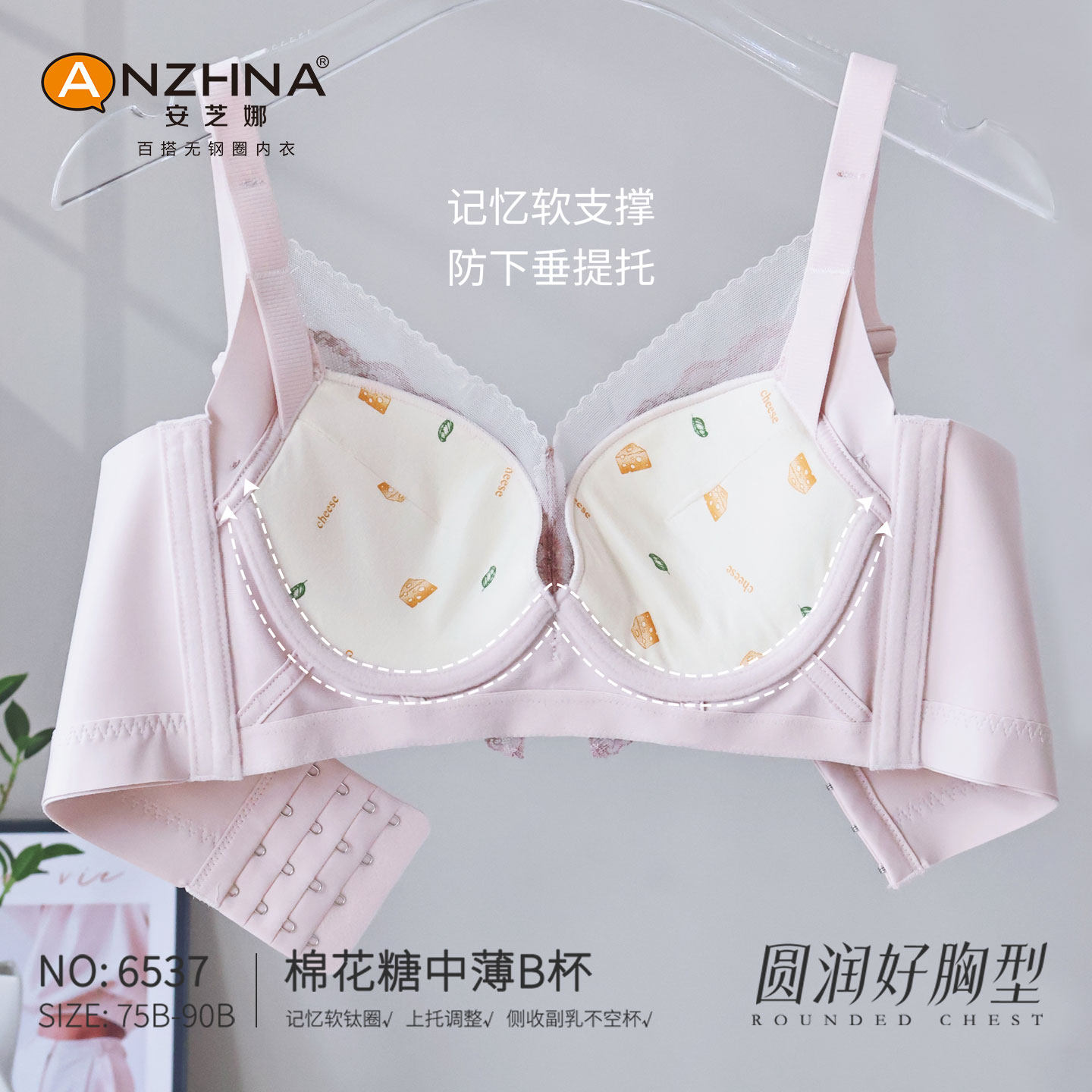 📚 安芝娜少女软糖风内衣女小胸聚拢显大防下垂调整型蕾丝文胸罩6537