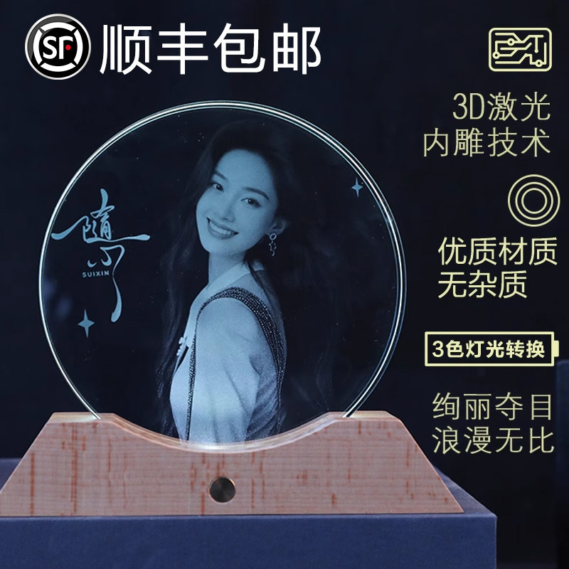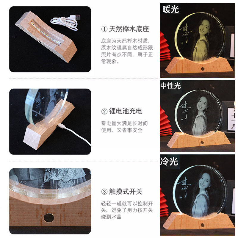 📚 情人节生日纪念礼物送男女友结婚创意乔迁定制照片水晶玻璃画内雕