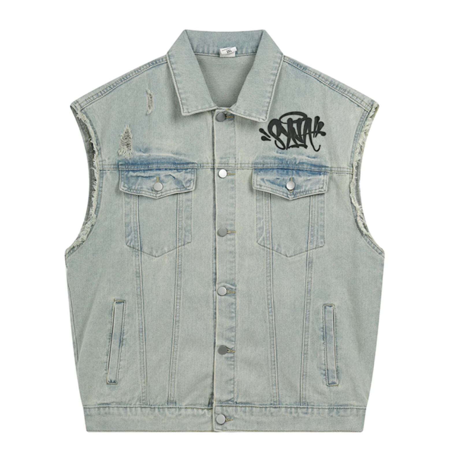📚 Synaworld Drill Vibe高街风格美式潮流宽松春夏无袖牛仔马甲外套