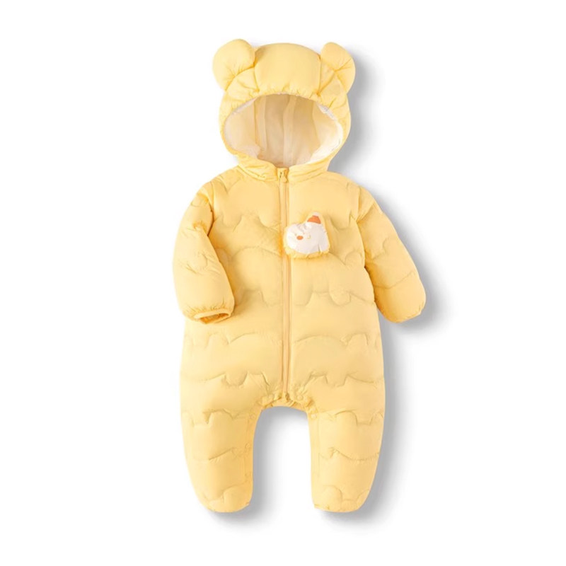 👶第一次看到这款羽绒连体衣,就被它那可爱的外观吸引了。无论是男孩还是女孩,穿上都是那么的帅气和温暖。连体设计,不仅方便穿脱,还能有效保暖,真的是非常贴心。