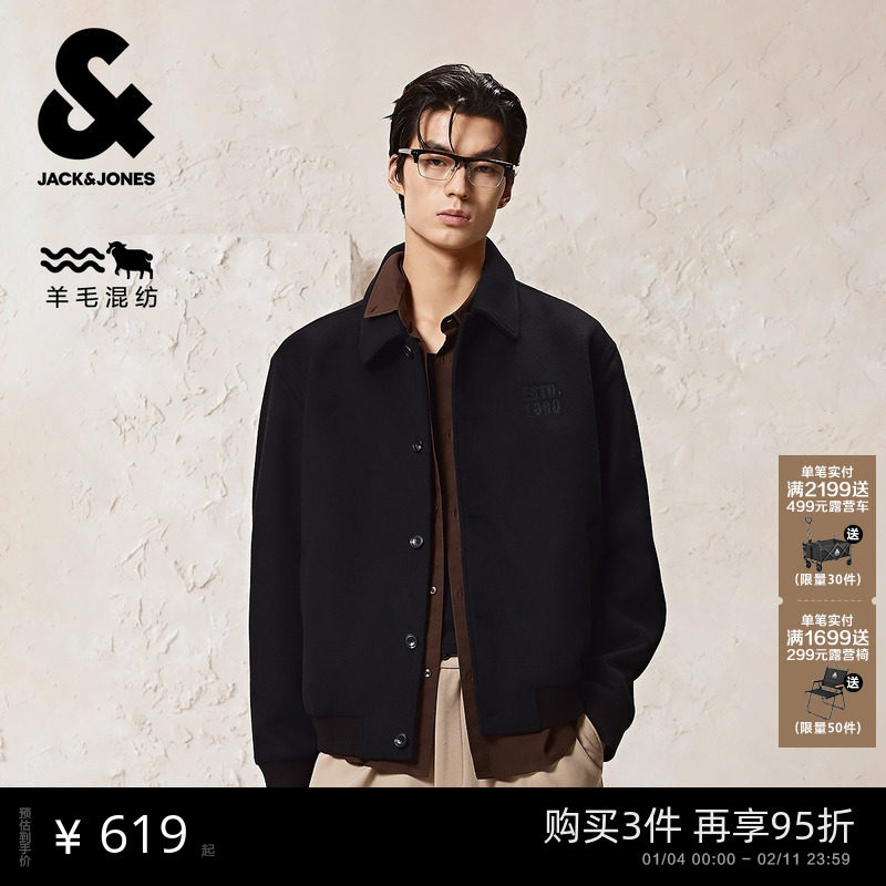 📚 杰克琼斯含羊毛短款呢外套男秋新款质感羊髦经典翻领呢子外套男装