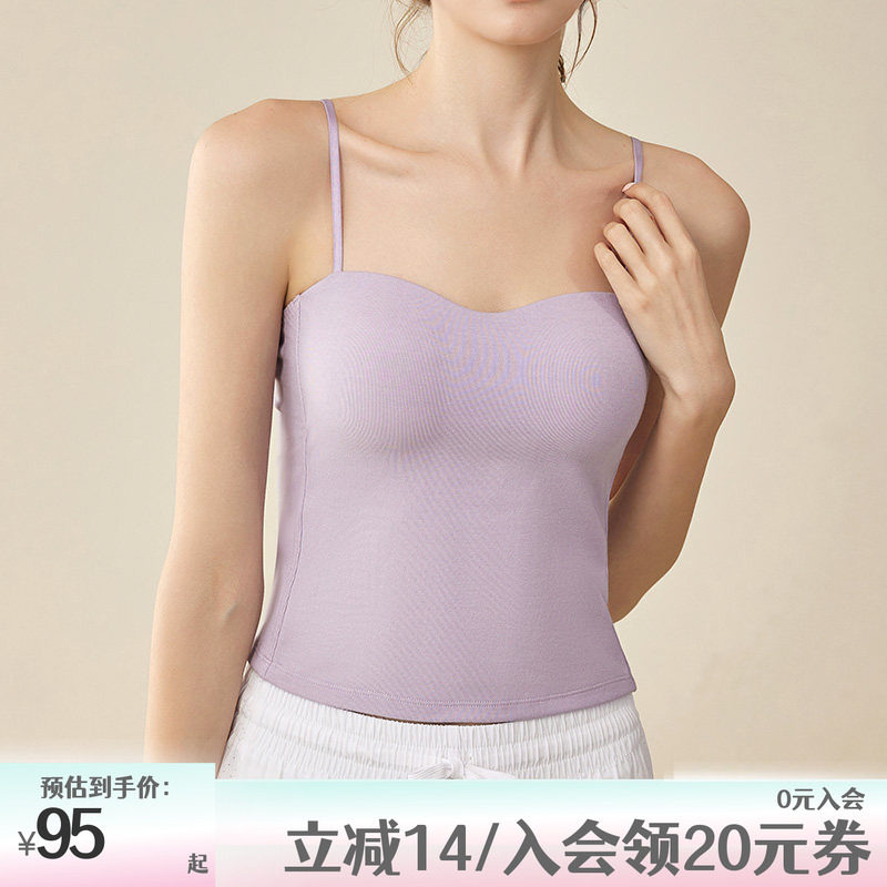 📚 美背心女打底长款修身内搭带胸垫吊带大码抹胸内衣香芋淡紫色上衣