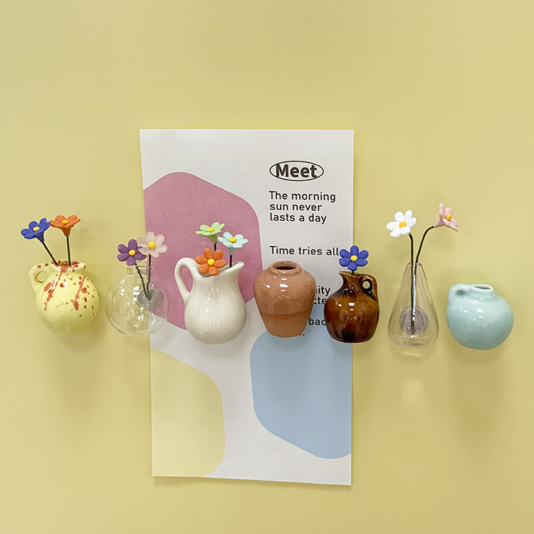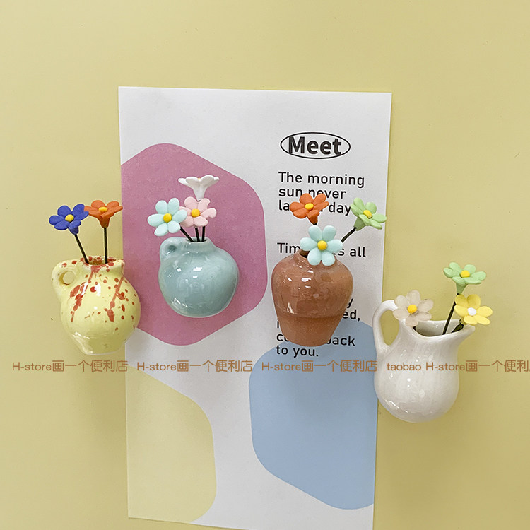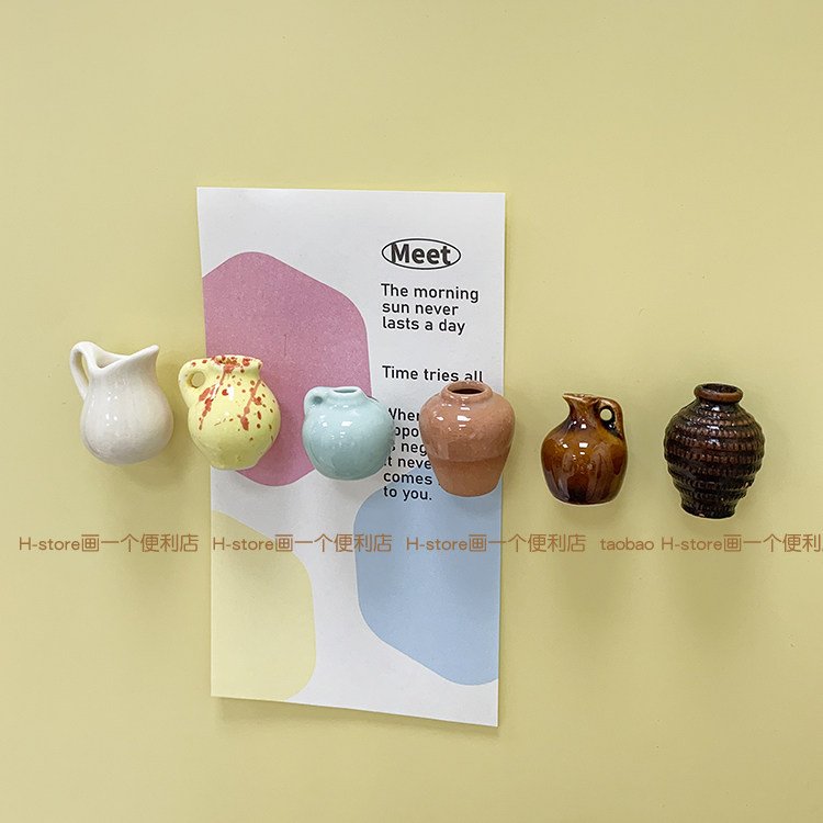 📚 H-store 可爱迷你陶瓷小花瓶冰箱贴磁铁磁吸装饰入户门洞洞板